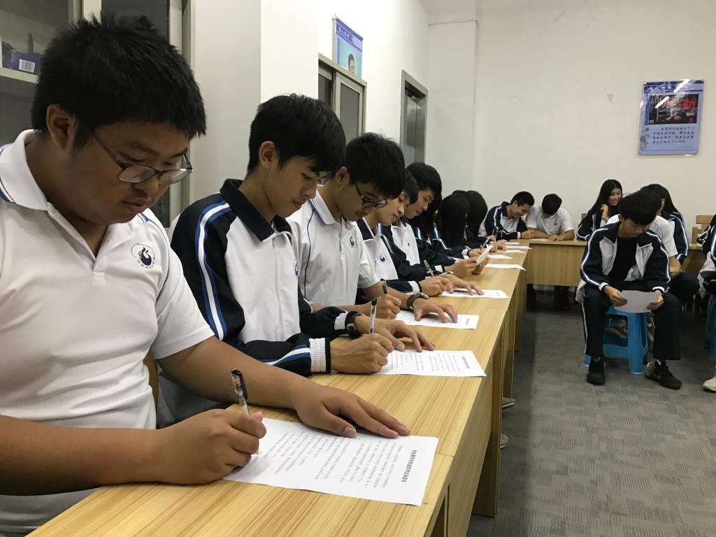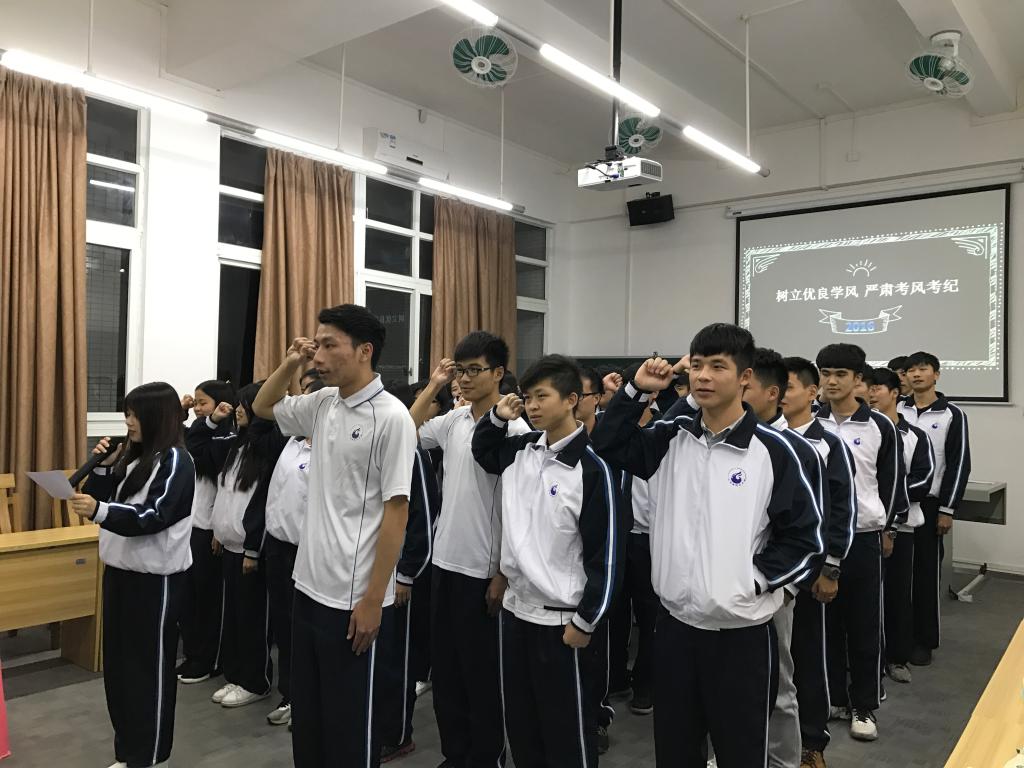 会后,2016级学生代表王迁迁带头进行了“我为诚信代言”班级发言,并带领2016级学生进行诚信考试宣誓签名。