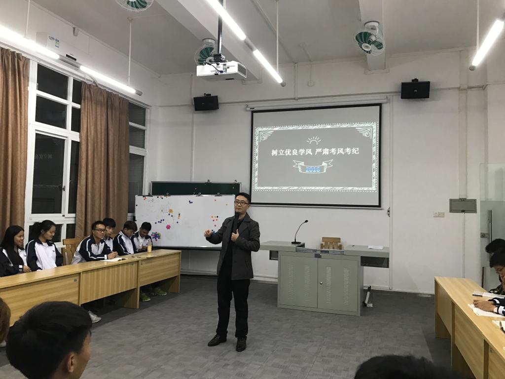 会上,王勇副院长从“文明礼仪教育”到“规范学风考风”深刻阐述了诚信考试的重要性和必要性。王勇副院长还指出要发挥模范带头作用且不仅仅局限于本次考试。要在本学院开展“一帮五”活动,以一名先进班干带动五名同学,起到模范带头、监督指导作用,并号召同学们开展“三禁活动月”——禁烟、禁酒、禁网游。最终达到促进同学互相学习,凝练学院优良学风,构建学校和谐稳定的目标。