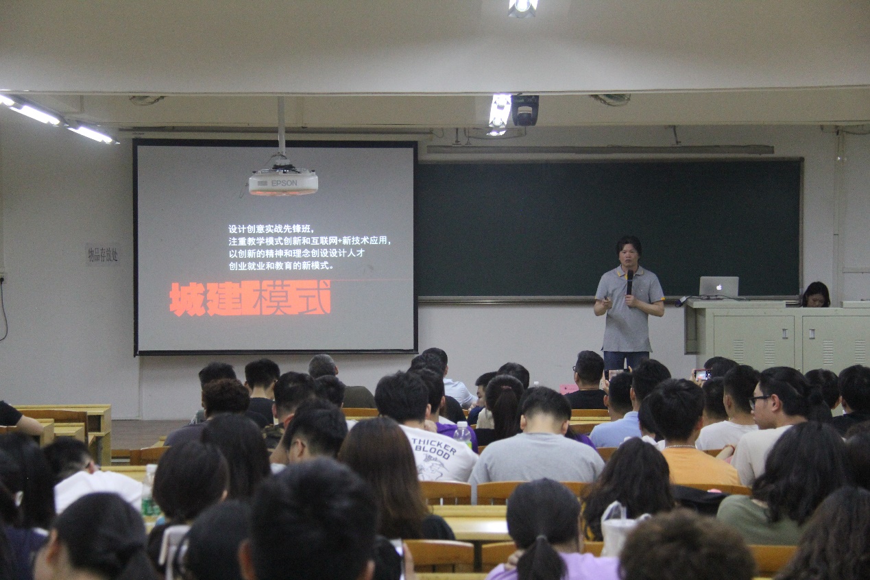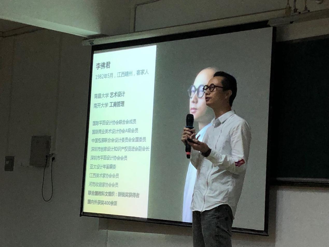 李佛君老师以“倡导现代东方美学”为切入点进行了主题宣讲,与同学们一起分享了个人设计和创业经历。