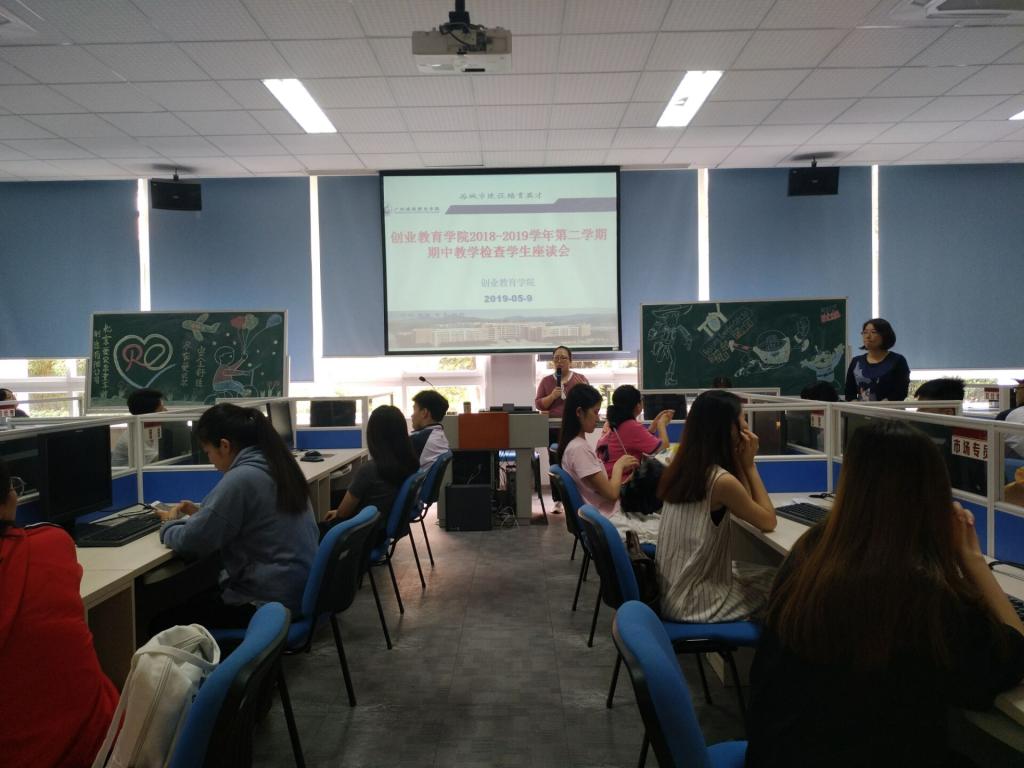 5月9日下午,创业教育学院组织召开了2018-2019学年第二学期期中教学检查学生座谈会。创业就业教研室主任陈飞飞,副主任李丹及各班学生代表参加了本次座谈会。