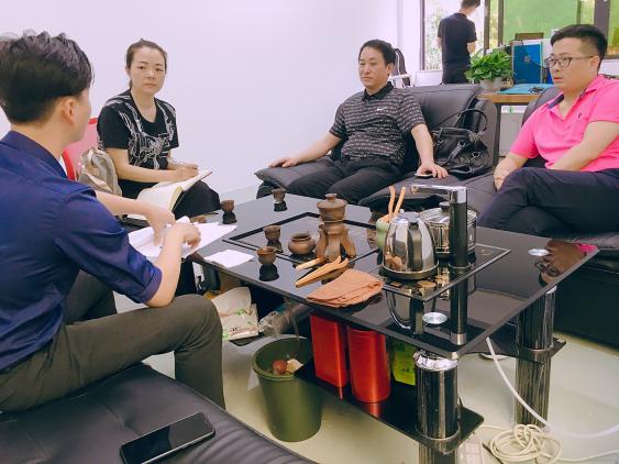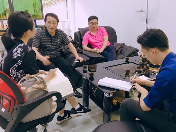 5月22日,创业教育学院邱漠河院长、艺术与设计学院环境艺术设计专业教研室主任蒋霞、经济与管理学院会计专业尹峰老师,就进一步打磨参加第五届中国“互联网+”大学生创新创业大赛的商业计划书,来到广州迪克装饰设计有限公司,受到企业董事长游德坤以及合伙创始人余锦豪、公司设计师等人的热情接待。