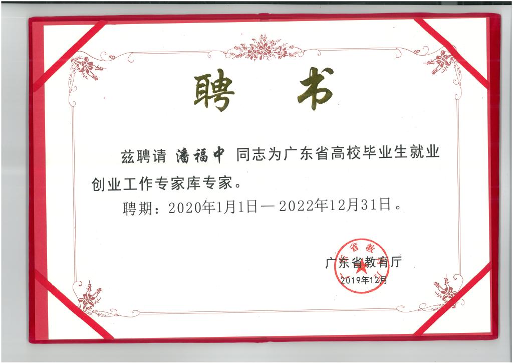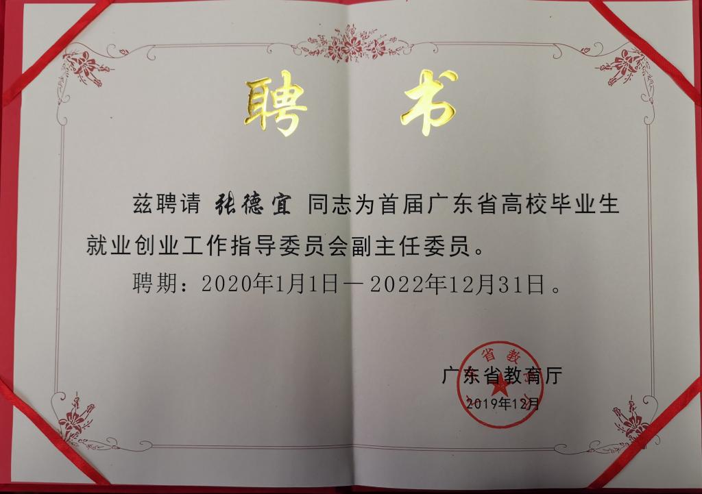 经学校推荐、省教育厅综合评选,近日,副校长张德宜被聘为广东省高校毕业生就业创业工作指导委员会副主任委员,潘福中、邱漠河被聘为广东省高校毕业生就业创业工作专家库专家。