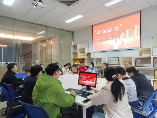 12月25日14:30,创业教育学院与马克思主义学院在信工财经楼2120会议中心联合举办课程思政与思政课程“双向融合”专题教研活动。本次活动聚焦《职业发展与就业指导》课程的思政融入路径,旨在通过跨学院协同备课,推动思政教育与专业教学深度融合。创业教育学院办公室主任周峰、中心主任黄葆荣、侯树钰,马克思主义学院“双向融合”工作组组长宋霞及双方教师团队共同参与研讨。