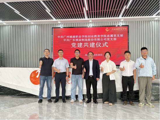 10月29日,广州城建职业学院创业教育学院直属党支部与广东领益制造股份有限公司党支部党建共建签约仪式在领益公司顺利举行。双方党组织代表齐聚一堂,共同签署党建共建合作协议,标志着校企双方在党建引领下开启优势互补、协同发展的新篇章,是贯彻落实新时代党的建设总要求、深化产教融合的生动实践。