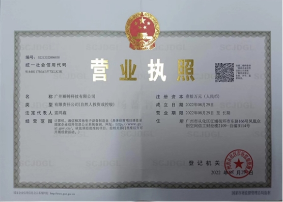 2022年8月,在家人的帮助下,成立了广州臻铸科技有限公司。公司的成立让他倍感压力,从公司注册、到设备安装、人员招募、管理章程的设定,方方面面都需要自己实施,但他成功会将压力转化为推动自己前进的动力,不辜负家人的期许,不辜负学校对他的培养和教育,公司正常运营并逐渐稳定。公司员工从几人到十几人,月营业额从几万到几十万,他一步一步地向别人证明着自己。
