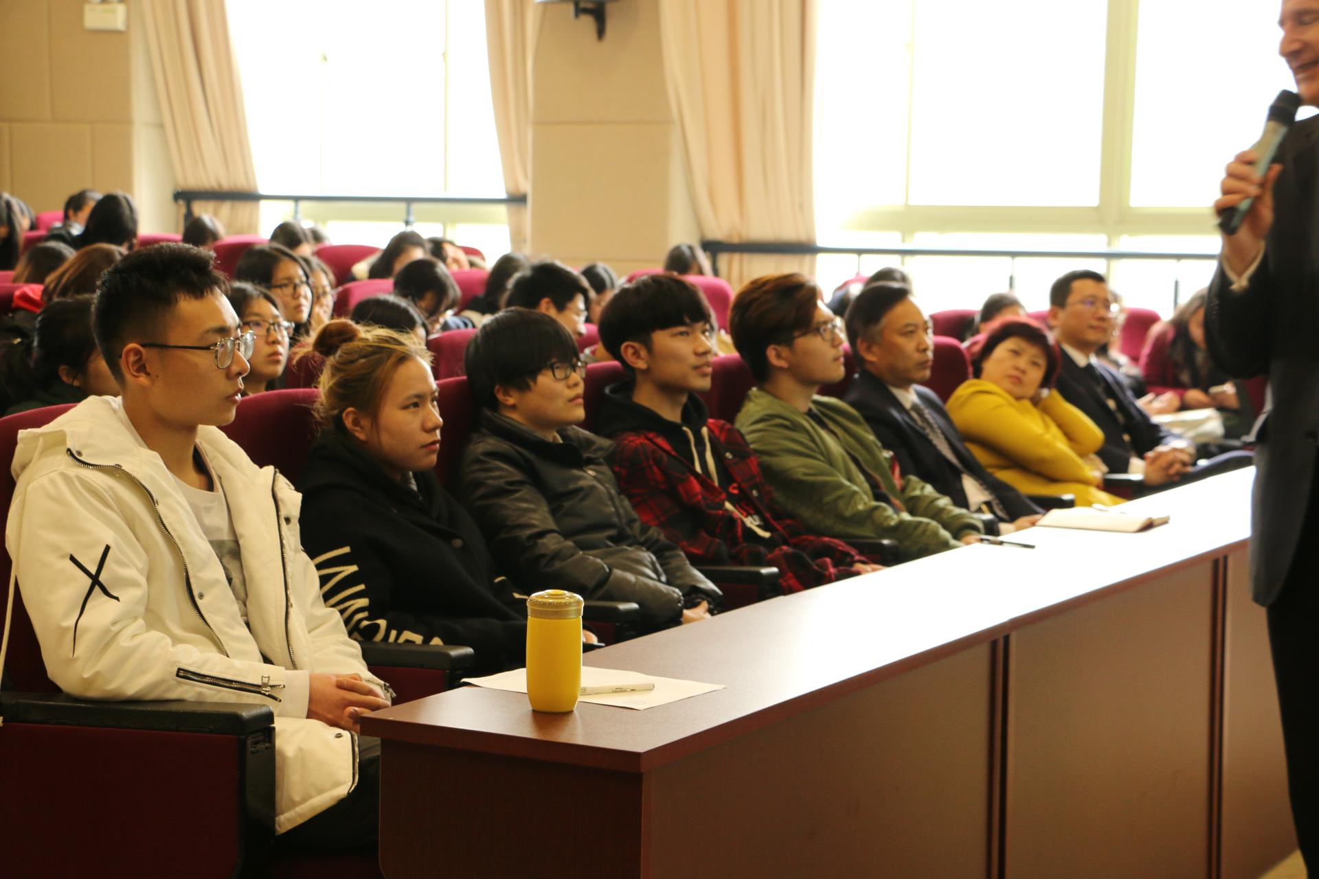 3月16日下午,英国班戈大学商学院院长威廉姆斯教授来到yl6776永利集团,为2015和2016级中英金融专业的同学们做了一场精彩的演讲,并与同学们进行了近距离的互动和沟通。yl6776永利集团党委书记蔡国金、副院长王聪聪、党委副书记叶秀、班戈大学中国办公室主任武晞月及相关教师也出席了此次讲座。