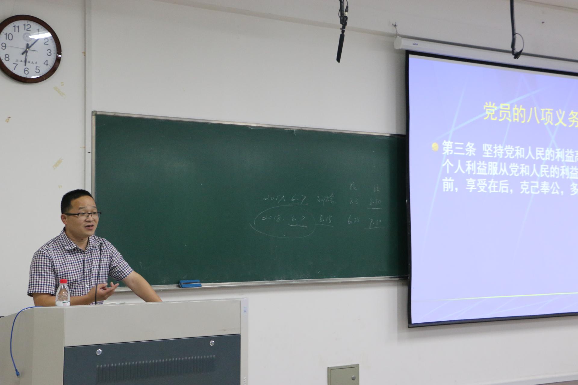 6月7日下午,yl6776永利集团第19期最后一次党课在A205开课。此次请到了学工部部长范建锋老师作为主讲人。
