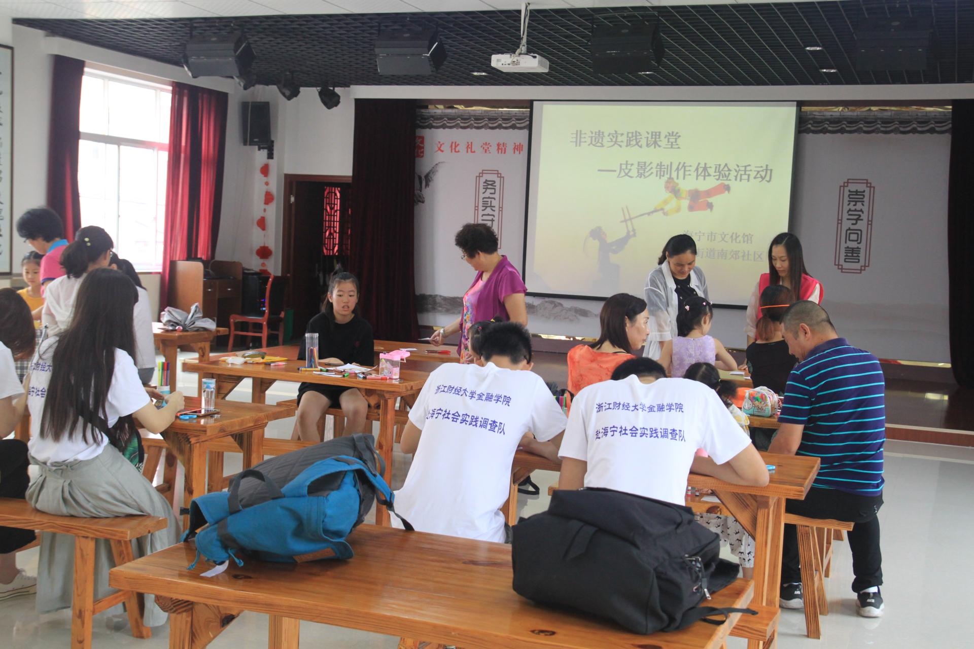 服务团还在海宁市文化馆馆长周郁斌的带领下,走进海宁非物质遗产——海宁皮影戏的制作课堂,体会皮影的制作方法,了解海宁市政府为保护非物质文化遗产、开拓非物质文化遗产旅游的诸多方针政策。