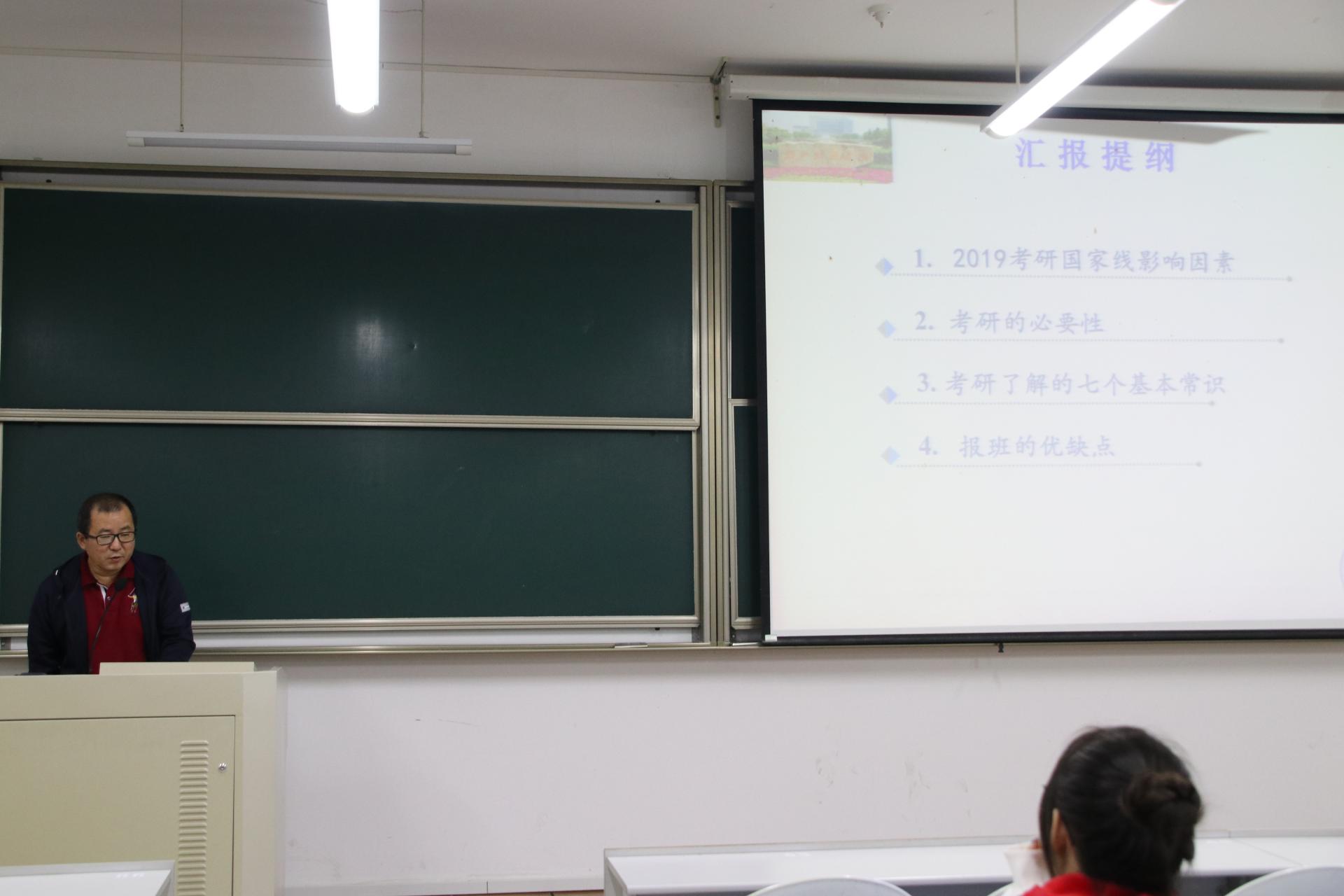 会上,朴哲范老师围绕“考研的必要性”、“2019年考研国家线影响因素”、“报班的优缺点”、“考研的七个基本常识”等四个方面详细解读了考研政策及为什么要考研。徐峰老师结合自身经历,分析了考研对个人提升的重要作用,并强调了“目标明确、坚定选择、高效学习”对考研成功的重要影响。