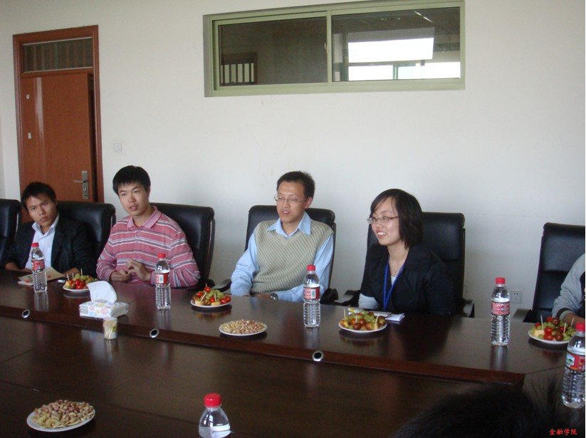 茶话会一开始,徐芸芸老师、张虹老师和陈泓江学长三人向在场的同学提起了当年陈学长在校期间的诸多事迹和近几年来财院发生的种种变化。在交流期间,陈泓江学长带领大家畅想了未来完全电气化自动化的生活;谈论了美元贬值问题;告诫我们作股票总结才是最重要的;还表达了一些对于大学生就业问题的看法;同时,他也反复提到“模拟证券投资竞赛是证券分析师的黄埔军校”……在学长正式却又不乏幽默的谈吐中,让我们感受到的是高瞻远瞩的眼光、对时事敏锐的洞察力以及对金融学子们的殷切关怀。