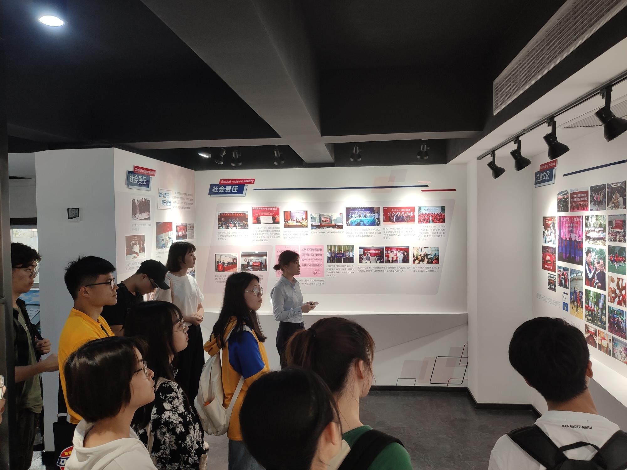 浦发银行理财经理刘安妮先带领同学们参观了浦发银行杭州分行行史馆,介绍了企业的发展历史、党建工作、社会责任及企业文化等相关内容。