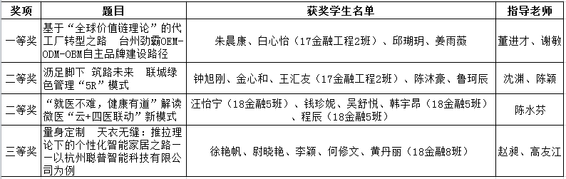 近日,2019年第五届浙江省大学生经济管理案例竞赛决赛在中国计量大学举行。经过案例文本双向匿名网评和现场答辩决赛,学校荣获一等奖3项、二等奖5项、三等奖2项和优秀组织奖。我院学生在此次比赛中表现优异,取得优异成绩。