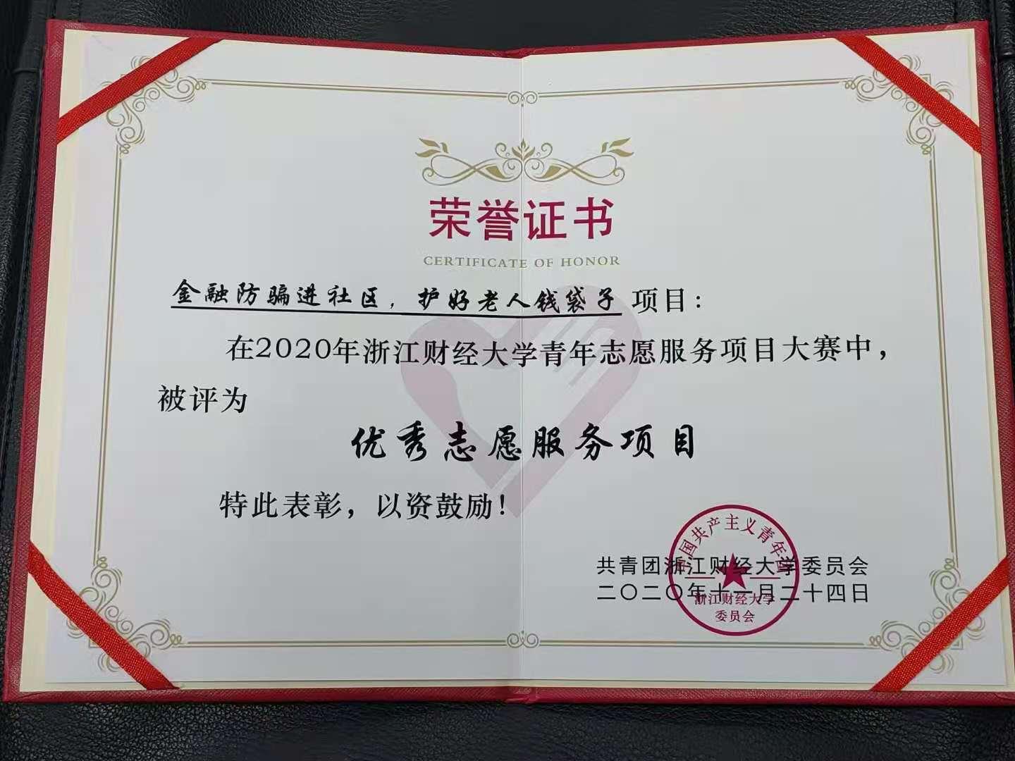 “防骗进社区,护好老人钱袋子”,是我院青志长期开展的志愿者服务项目,项目结合金融专业特色和志愿者精神,带领青年志愿者们走进社区,为老人们讲解防范金融诈骗知识。项目开展以来累计开展活动14次,直接受益人数317人,活动覆盖范围1286人,活动自开展以来受到了浙江新闻、新浪新闻、搜狐新闻等多家媒体的宣传报道。