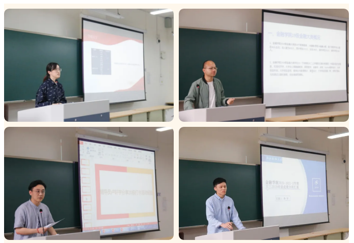 首先,2019级辅导员李文生、2018级辅导员陈信、2020级辅导员沈晓云分别结合本年级学生学业情况,对上一学期成绩做了详细的数据分析。李文生老师从2019级平均绩点、平均挂科率、科目学习情况三个角度进行深度分析,并根据个人学习心得,告诉大家数学没有巧、多做是法宝的宝贵经验。陈信老师以班级和寝室为单位,对2018级学生的学习情况进行生动地分析。他通过展示 “学霸”、“学神”以及“学霸寝室”的学分绩点、获奖情况等,激励大家“求其上者得其中,取其中者得其下,取其下者无所得”。沈晓云老师以班级间及内部整体比较、班级间高分比较等图表,生成了2020级同学挂科科目词频图,形象的展示了2020级学生的弱点和不足,勉励班委要发挥带头作用、探索新的学习方式、积极营造良好的学习氛围。2020级辅导员卢轩宇介绍了20级班级互助学习打卡活动,分享了部分班级的良好学风建设经验,希望大家坚持学风建设日常化。