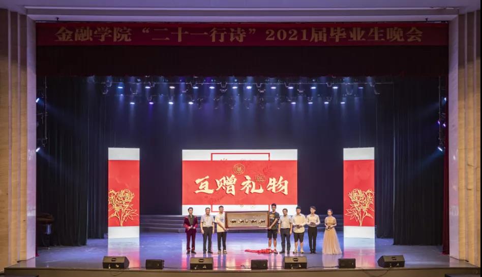 感激师长恩,珍藏母校情。师生互赠礼物环节,2021届毕业生代表为母校献上了“五牛图”作为礼物,yl6776永利集团院长陈荣达、党委书记蔡国金也赠予了毕业生属于yl6776永利集团的定制徽章,以美好的互赠为晚会写下美好的一笔。当晚,与2021届毕业生们朝夕相处的辅导员蒋超、沈耀杰、吴轶韵、翟丽媛也为毕业生们送上属于辅导员的心里话,希望他们鹏程万里,未来可期。