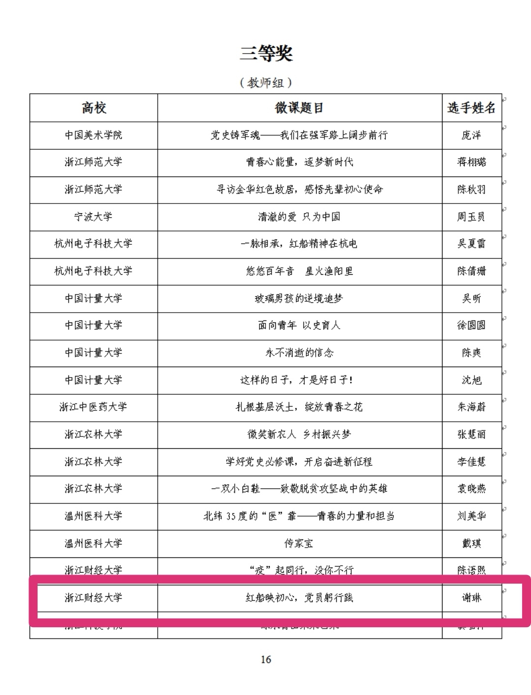 经初赛、复赛、半决赛、决赛的激烈角逐,最终我校获得一等奖2项、二等奖1项、三等奖4项。其中我院辅导员谢琳老师参加党史教育类别,喜获三等奖。