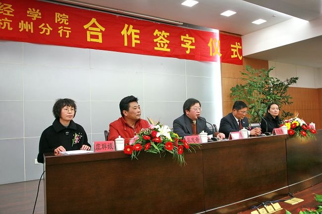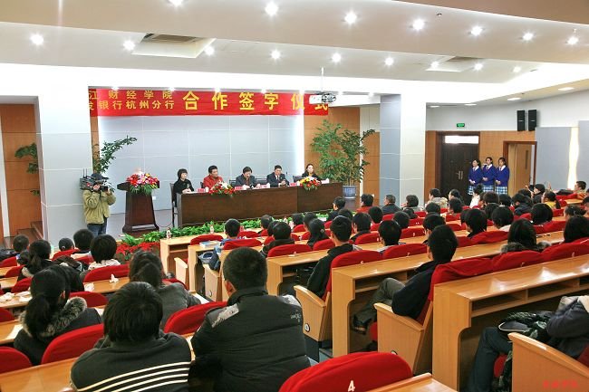 12月16日下午,浙江财经学院yl6776永利集团与广发银行杭州分行合作签约仪式暨yl6776永利集团2008年金融论坛闭幕式在行政楼报告厅隆重举行。副校长钟晓敏教授,广发银行杭州分行副行长陈张芳教授,广东发展银行杭州分行人力资源部副总经理唐笑静女士、我院院长虞群娥教授、我院党总支书记吴忠希教授出席了此次仪式。仪式由我院院长虞群娥教授主持。