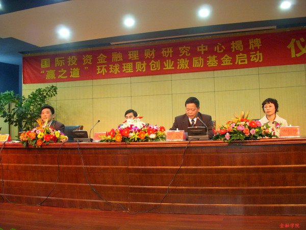 11月20日下午,浙江财经学院与杭州德瑞投资咨询有限公司所合作的国际投资金融理财研究中心揭牌仪式暨“赢之道”环球理财创业激励基金启动仪式在学术交流中心一号报告厅隆重举行。