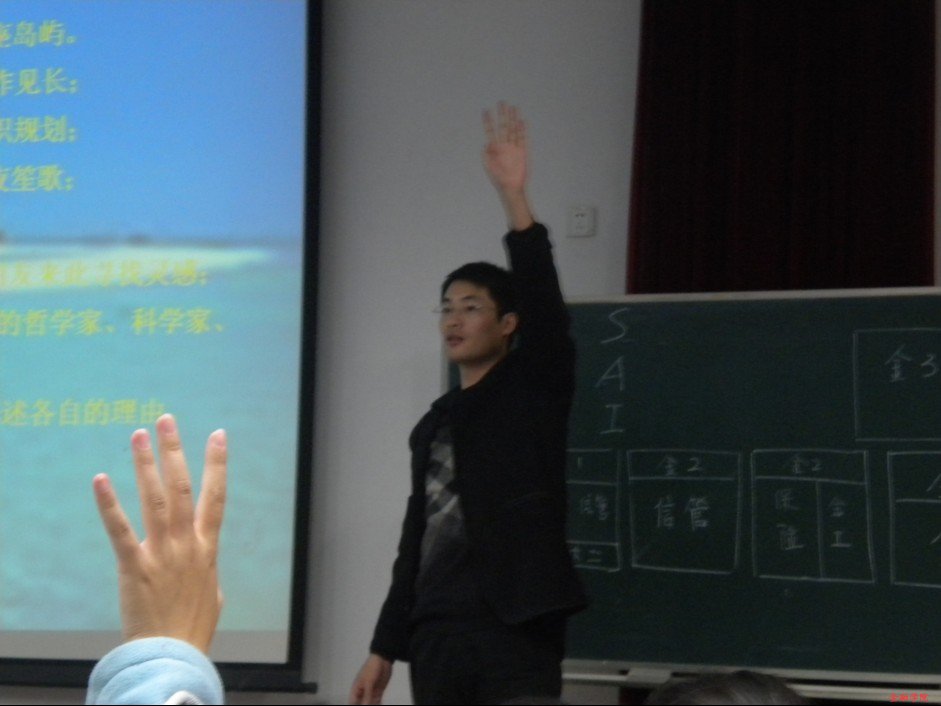 针对当前大学生就业问题日益突出并成为社会焦点的现状,沈鑫泉老师先以美国康奈尔大学著名的青蛙实验和众多老年人对年轻时错误择业或事业无成的后悔入题,强调了人生的短暂与职业生涯规划的重要性。之后,沈老师又对职业生涯规划的环节进行了系统阐述,即审视自我、确立目标、明确理由,生涯策略和时间期限。通过讲述,帮助同学们有序、合理规划自身职业生涯,进而实现青春价值。此外,在授课中,老师设置了丰富多彩的小组活动,如制作生命线、制定假期旅游计划、选择兴趣岛等,这些别开生面的活动不仅让人耳目一新,也活跃了课堂氛围。