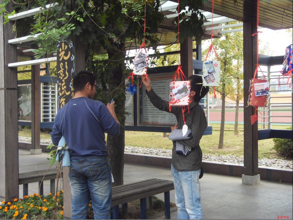 为了准备这些“花灯”,大家倾注了不少的心血,连从未拿起过针线的男生也开始穿针引线。从采购材料到剪裁纸片,从绘制插图再到花灯成型,大家都做得仔仔细细、尽心尽力。那一盏盏花灯,寄托着我们每个人对财院的衷心祝福,同时也饱含着我们所有人对财院的真挚的爱慕情怀!一盏盏花灯迎风摇荡,一群群浙财学子驻足观看。看着这些新老照片,同学们感叹不已:“我们的母校发展得真快啊!”照片不仅吸引了众多学子的眼球,也引得老师们和知名校友们的赞叹。看着这些老照片,他们不禁谈起了昔日母校的点点滴滴。