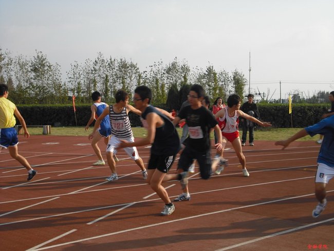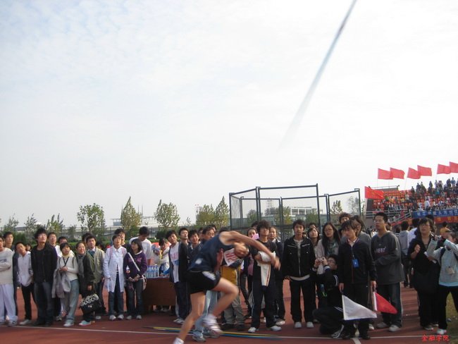 首日早晨,久未放晴的天空迎来了灿烂的阳光,为运动员们驱散了风中作战的寒冷。老将李跃辉在男子标枪比赛中,第一轮三掷后排名第一轻松进入二轮角逐。随着最后一掷枪头落地,李跃辉凭借43.15米的绝对优势将本届校运会的首枚金牌收入囊中,成功蝉联,为我院赢得开门红,并在次日男子铅球项目上为我院奖牌榜又添一银。同时进行的男子跳高比赛中,选手张南沉稳应战,取得该项目亚军。跳远赛场上,上届全能亚军方吉发挥出色、力压群雄,夺得桂冠。来自08级金工班的小将李佳露,凭着一股“初生牛犊不怕虎”的锐气在女子五项全能的比拼中全力以赴、坚持不懈,击败重重参赛对手获得季军,同样来自08级的小姑娘陈艳琼取得该项目第六名,为我院女子全能记录添上了精彩的一笔。长短距离径赛、女子跳高跳远等个人项目中,我院选手亦榜上有名。