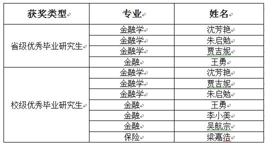 根据浙江省教育厅办公室《关于对2018届浙江省普通高等学校优秀毕业生进行确认的通知》(浙教办函[2018] 5号)和《永利集团研究生荣誉称号评定办法》(浙财大[2014]91号)文件精神及永利集团党委研究生工作部关于做好2018届省级、校级优秀毕业研究生评定工作的通知,经学生自主申请、评审委员会初评认定,现将获得2018届省级、校级优秀毕业研究生的推荐经名单公示如下: