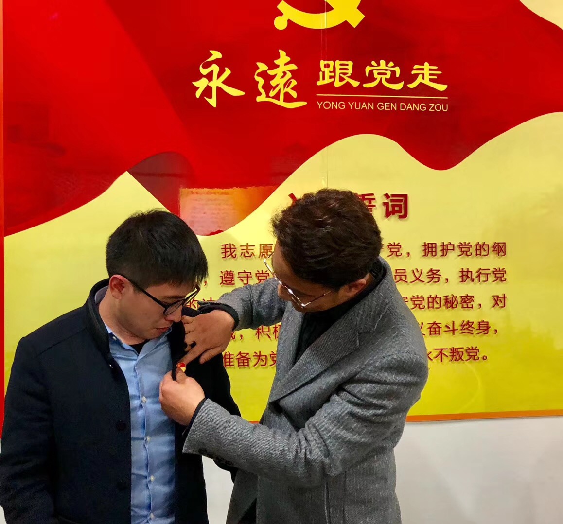 离别,一个不愿意谈及又不得不面对的话题,因为不舍因为难离!一曲离歌《起风了》、一部毕业生党员的最美回忆视频、一张最美瞬间照,这点点滴滴的温馨勾起了毕业生党员对研究生支部两年半的美好回忆,在谈及对党支部建设的建议时,梁嘉浩同志说,对于研究生党员来说,我们需要更多跨年级沟通,作为学弟学妹需要学长学姐指点迷津,作为学长学姐可以给学弟学妹一些中肯的建议,这样也能形成一股党支部凝聚力;张若云同志则结合自身即将走向工作岗位的情况建议说,今后需要加强毕业党员和党支部的沟通,毕业生党员可以提供其所在组织的建设经验,为yl6776永利集团研究生党支部的建设提供重要的借鉴价值。各位党员积极发言,离别时刻仍不忘党支部后续发展,关心牵挂着曾经待过的家,这种用信仰和情怀正是我们每一位党员不能忘记信条。在党徽赠与仪式上,党员同志面对党旗、誓词墙,由聂老师为优秀党员代表授予党徽、各支部书记授予各位毕业生党员党徽。在授予党徽时刻,庄严肃穆,各位党员表示无论他们走向哪个岗位都能会铭记党员身份、发挥党员先锋模范作用。
