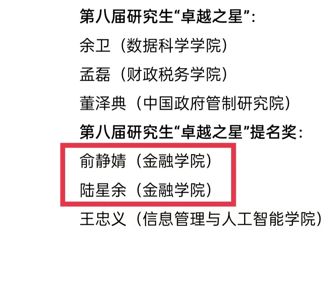 热烈祝贺我院20级博士研究生俞静婧、21级硕士研究陆星余荣获第八届研究生“卓越之星”提名奖!