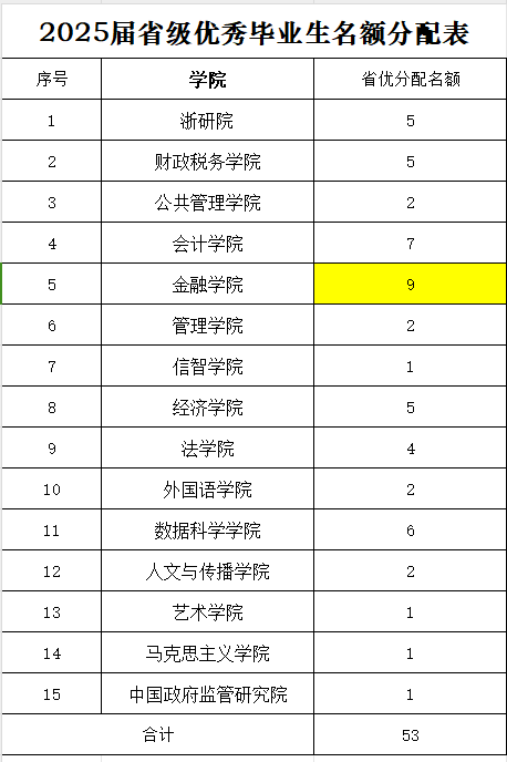 省级优秀毕业研究生在校级优秀毕业研究生人选中产生,省教育厅核定我校2025届优秀毕业研究生共53人,以学院为单位进行评定,初次分配名额详见附件1。各学院(研究院)按照评定办法对参评者进行审核把关,如满足评比条件人数少于初次分配名额的,剩余名额由学校收回,由学校组织竞争性评审。各学院(研究院)符合省级优秀毕业生条件人数较多的,可以按不超过初次分配名额30%的比例推荐候选人(小于等于3人的,可推荐1人)参与竞争性评审。