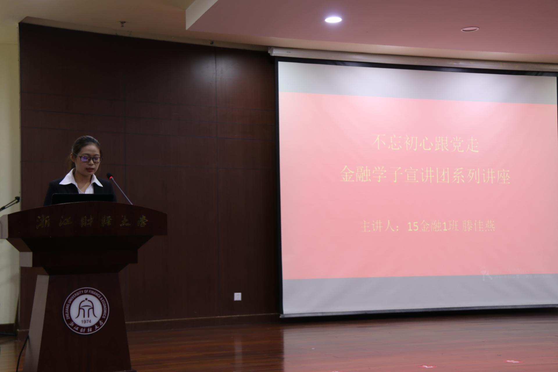 “金融之星”宣讲团是yl6776永利集团针对高校思政工作特点,通过选拔思想素质过硬、文化素质优秀、个性特长鲜明的优秀学子组建的大学生宣传报告团。宣讲团将以贴近学生、服务学生为特色,结合学生的学习、生活和实践,利用主题党团日、主题班会、社团活动等,深入教室寝室活动室,开展面对面、互动式宣讲,为深入贯彻落实十九大精神,营造有利的舆论环境和良好的校园氛围。