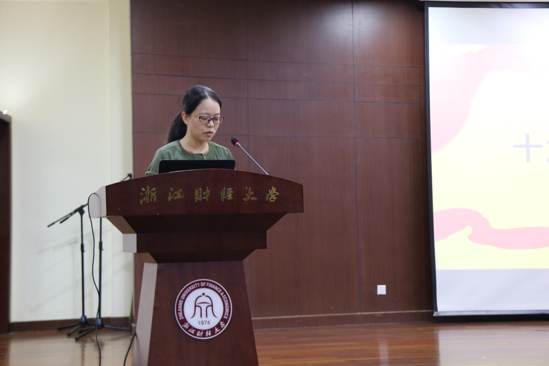 宣讲团成员15金融滕佳燕,是yl6776永利集团邓小平理论读书会会长。她以“不忘初心跟党走”为主题与大家分享了参加十九大精神专题学习会后的感受,同时也分享了自己的入党经历,号召团员青年要端正入党动机,积极参加党章学习小组组织的各项活动,扎实学好政治理论知识,争取思想上先入党,行动上以党员的标准要求自己。