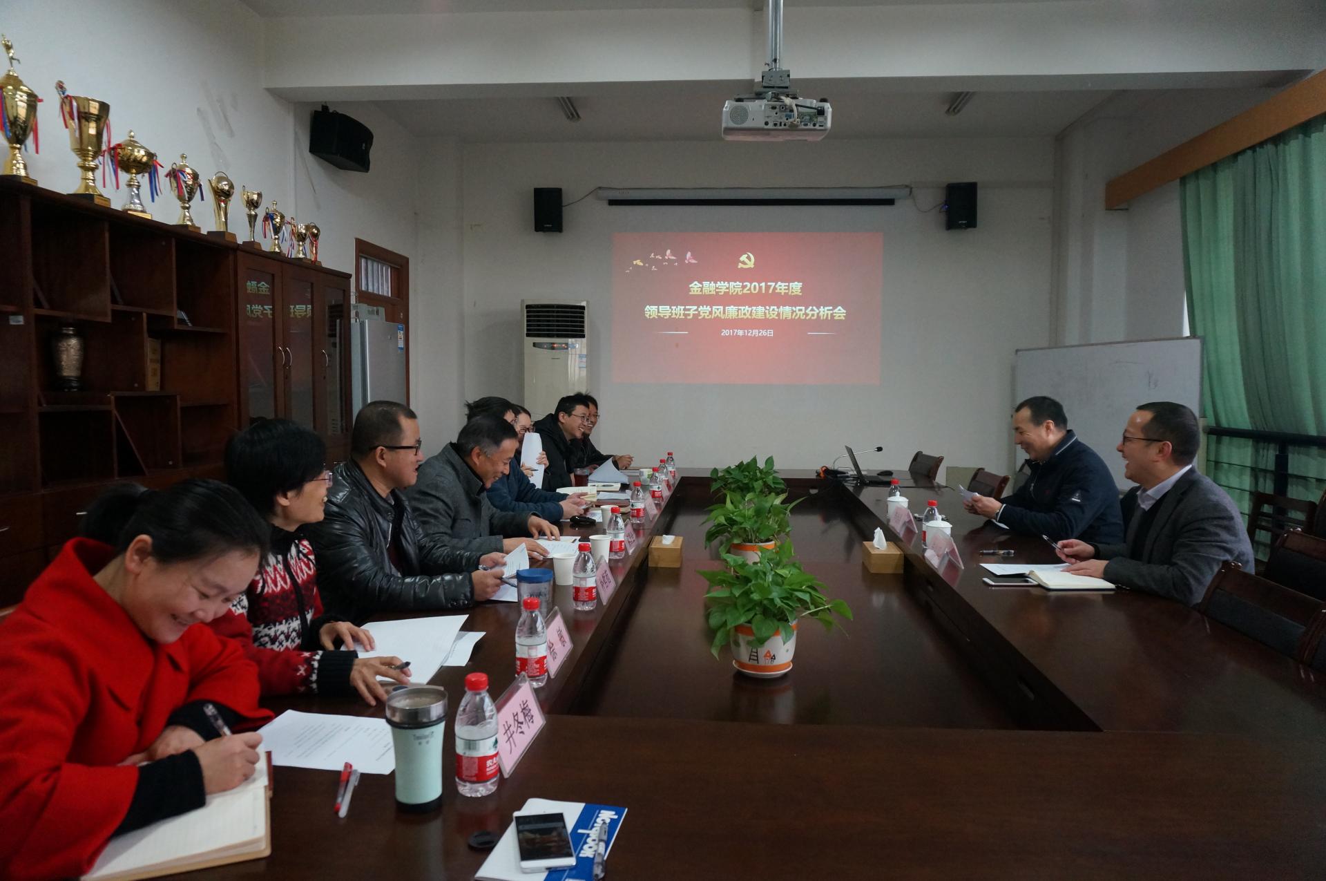 12月26日上午,yl6776永利集团2017年度领导班子党风廉政建设情况分析会在学院楼422会议室举行。校党委书记李金昌,校党委办公室、校长办公室副主任朱旭明,学院党政领导班子全体成员,学院党委委员,学院纪委委员参加了本次会议。会议由院党委书记蔡国金主持。