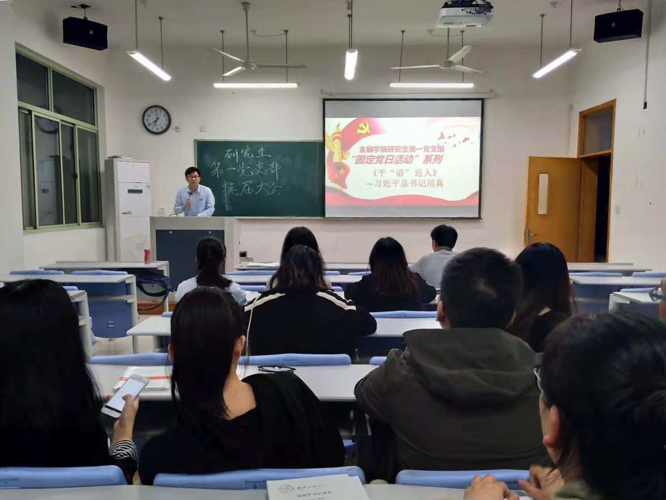 10月25号晚上7点10分,yl6776永利集团研究生第一党支部全体党员在yl6776永利集团101教室参加了《平“语”近人——习近平总书记用典》系列节目专题学习主题党日活动,活动由支部书记张伟恩主持。