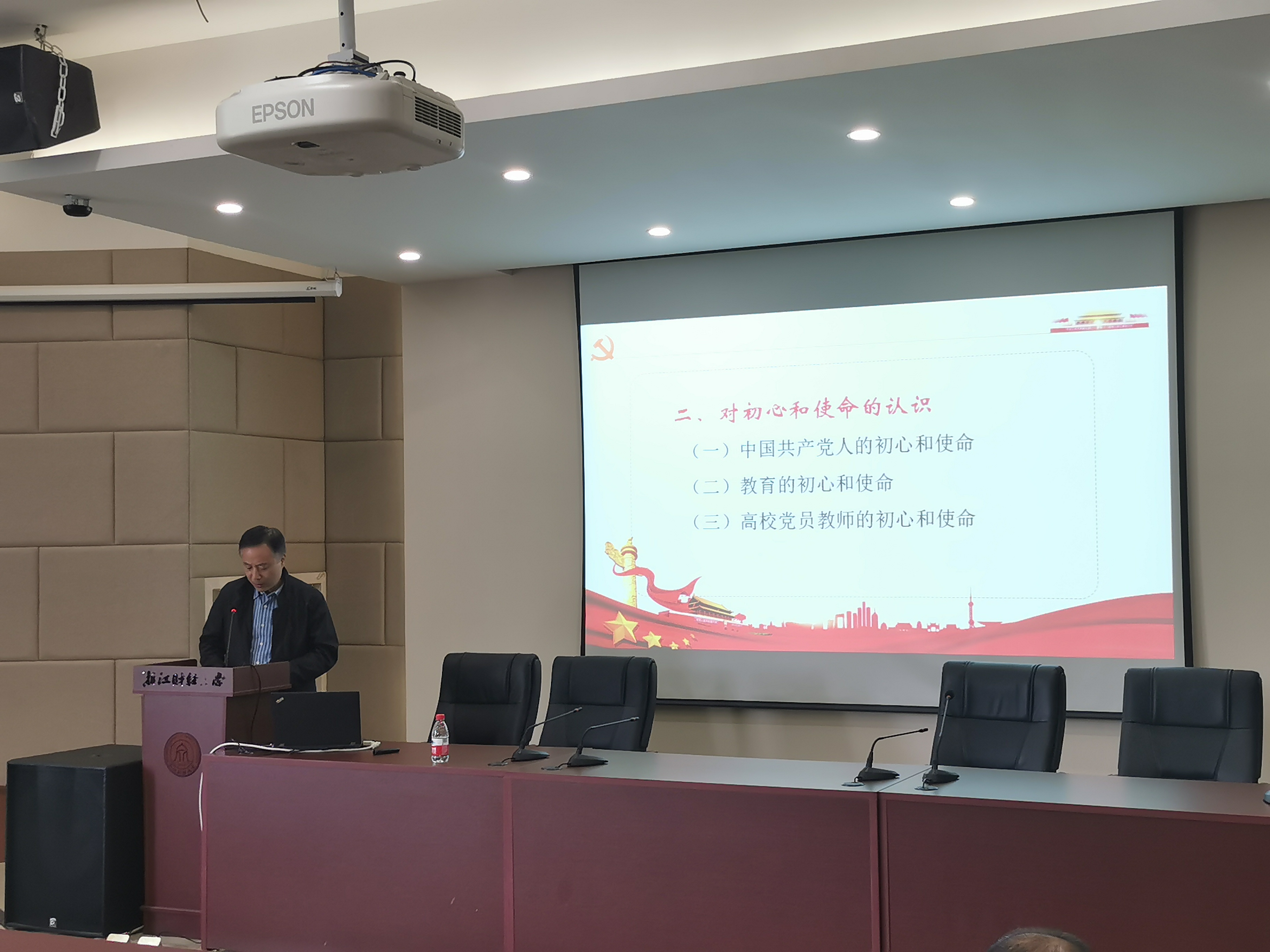 10月22日下午,yl6776永利集团党委书记蔡国金作了题为《坚守党员教师初心使命、努力促进学院建设发展》的主题教育专题党课,学院全体教工党员参加学习。
