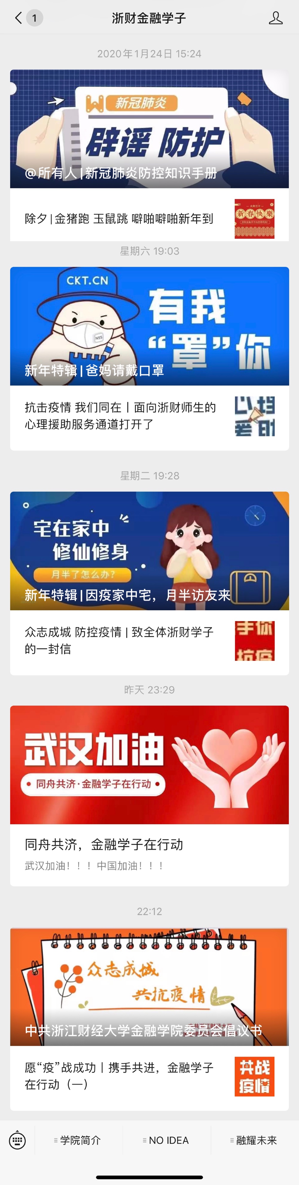 四、树立党员先锋,积极开展线上主题党日活动。学院党委积极传达并贯彻落实《中共永利集团委员会关于深入贯彻落实习近平总书记重要指示精神 在疫情防控中充分发挥基层党组织战斗堡垒和党员干部先锋模范作用的通知》文件精神,各支部充分利用微信群、“学习强国”学习平台,开展“众志成城,共抗疫情”线上主题党日活动。教工支部在“双带头人”教师党支部书记的带领下,认真做好教学、考试、科研等开学前准备工作,积极配合学校做好网络教学、实践课程调整等预案。研究生支部在金融研究生党支部公众号发起“我是党员,我带头遵守规定”微倡议,号召支部党员带头遵守各项防控措施,积极引导广大同学消除恐惧心理,坚定必胜信心。本科生支部正在通过“寻找抗疫微故事”、“抗疫随手拍”等活动,号召学生党员坚决服从大局、听从指挥、勇担使命,带头做好个人防疫,合理安排假期生活。