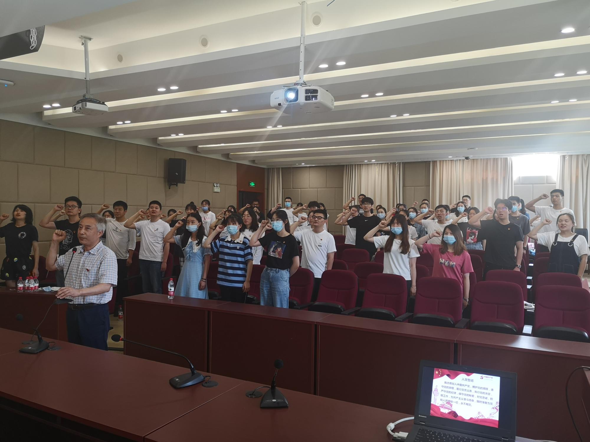 6月28日下午,yl6776永利集团2020年上半年新发展党员入党宣誓仪式在yl6776永利集团楼202报告厅隆重举行。学院党委书记蔡国金、专职组织员翟丽媛、各学生党支部书记、支委以及全体新发展党员参加了本次活动。