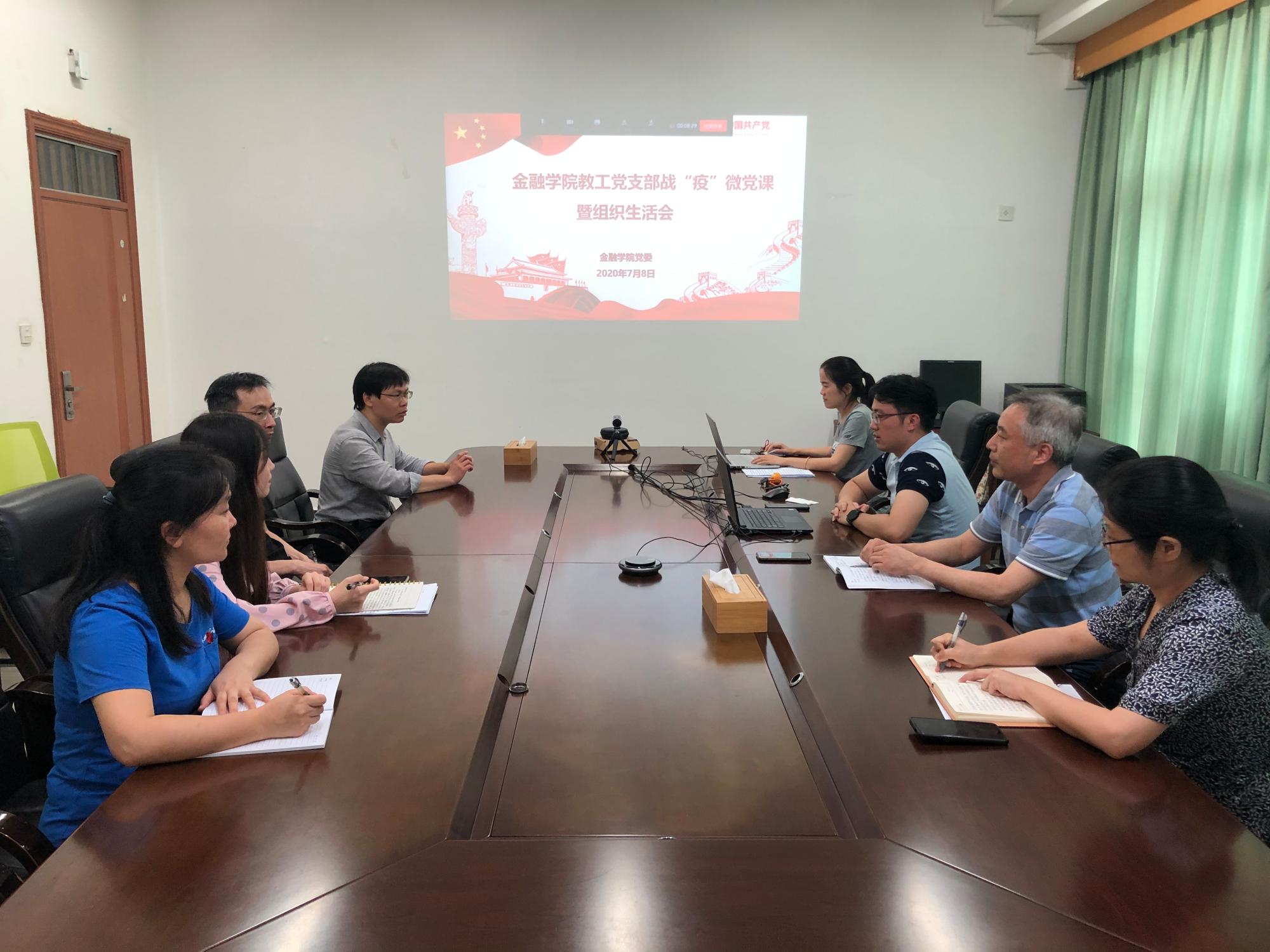 依据教育部思想政治工作司关于开展高校基层党组织常态化疫情防控“四个一”行动方案,以及学校关于开展庆祝建党99周年系列活动通知的有关要求,7月8日,yl6776永利集团党委组织五个教工党支部联合开展“党旗飘扬 筑牢红色防火墙”——战“疫”专题微党课暨“迎党的生日、讲战役故事、悟初心使命”组织生活会,活动以“线上+线下”的方式进行。yl6776永利集团党委书记蔡国金、党委副书记谢敏及各教工党支部成员参与了此次活动,活动由教工第一党支部书记金骋路主持。