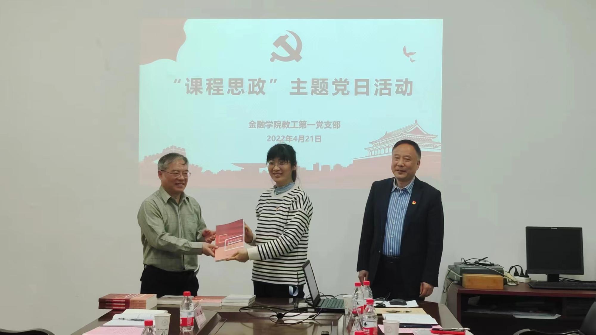 首先,教工第一党支部书记金骋路结合金融学专业建设向大家介绍了课程思政建设背景。他强调在金融学专业培养目标中,“良好的思想政治素质”应排在首位,课程思政建设的基础在课程、重点在思政、目标是立德树人,“我们要在教学的过程中,与学生做同行者,以多思维、多角度去进行思政教育。”