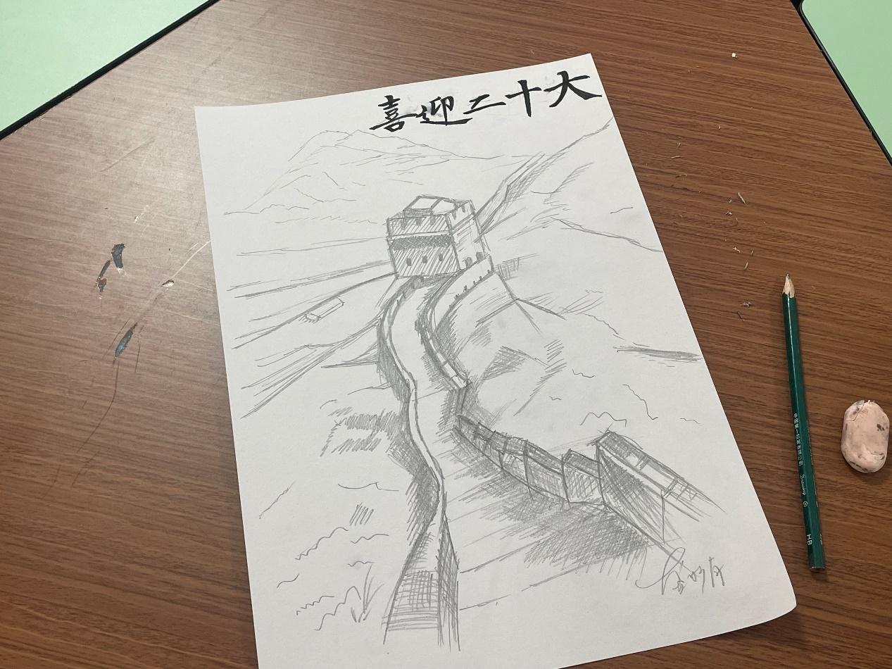 活动中,参与者在1小时内完成限时作画,绘画作品有素描、彩绘等。大家用手中的画笔表达了对党的二十大将至的盼望之情,表达了广大青年对建设社会主义强国的高昂热情及对祖国美丽风貌的无尽喜爱,以实际行动迎接党的二十大胜利召开。