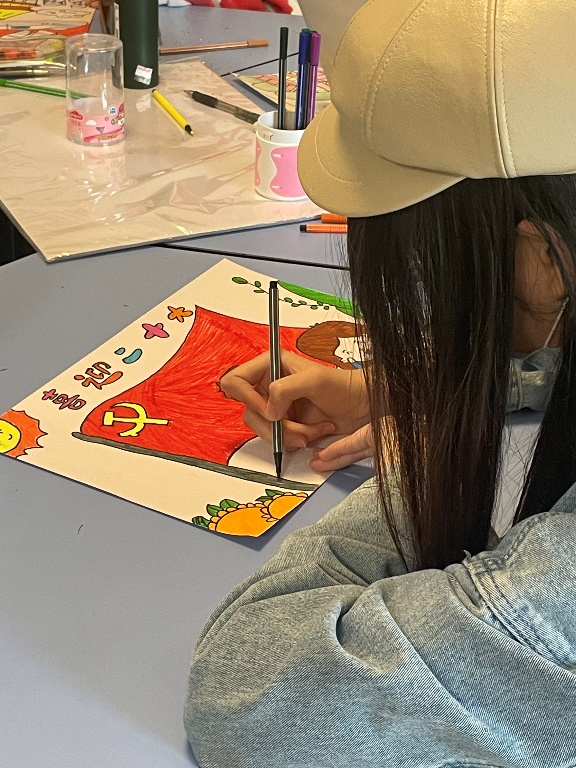 10月11日,yl6776永利集团本科生第一党支部在桃李苑3幢生活园区活动室举办了“喜迎二十大,墨香伴成长”绘画创作主题活动,支部书记叶苗苗带领党员们通过绘画感悟新中国的快速发展进程,抒发了大家对祖国美好的热爱和祝愿。