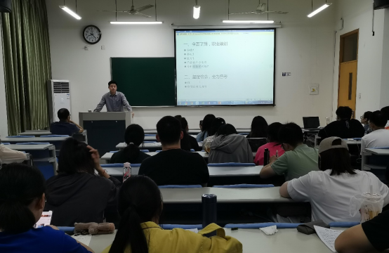 会议第二环节,开展支部毕业生党员欢送会,表达对2018级毕业生党员的毕业祝贺与未来祝福。首先,会上由邱杰、罗沁、周泠钧等毕业生党员为学弟学妹们传授考研考公经验。其中,邱杰学长从职业规划、坚定信念、备考具体问题三个方面分享自己的考公经验,鼓励学弟学妹们脚踏实地、砥砺前行。