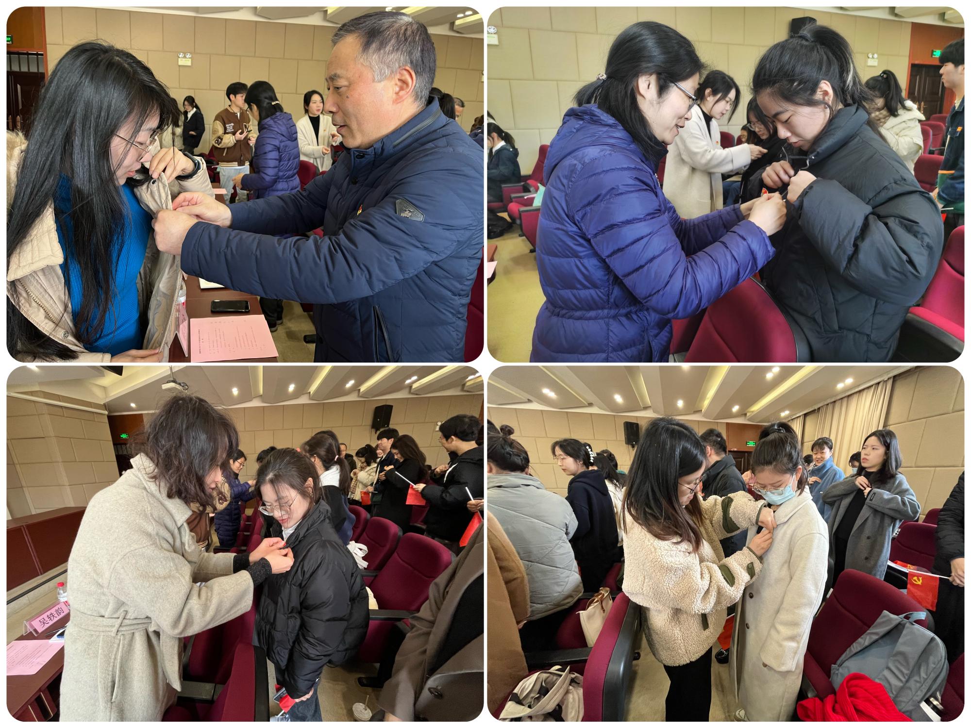 与会老党员为新发展党员佩戴了党员徽章。新老接续、初心传承,一枚小小的徽章中蕴含着巨大的精神力量。老党员为新党员佩戴党徽是一种鞭策,也是一种激励;是一种传承,更是一种延续。