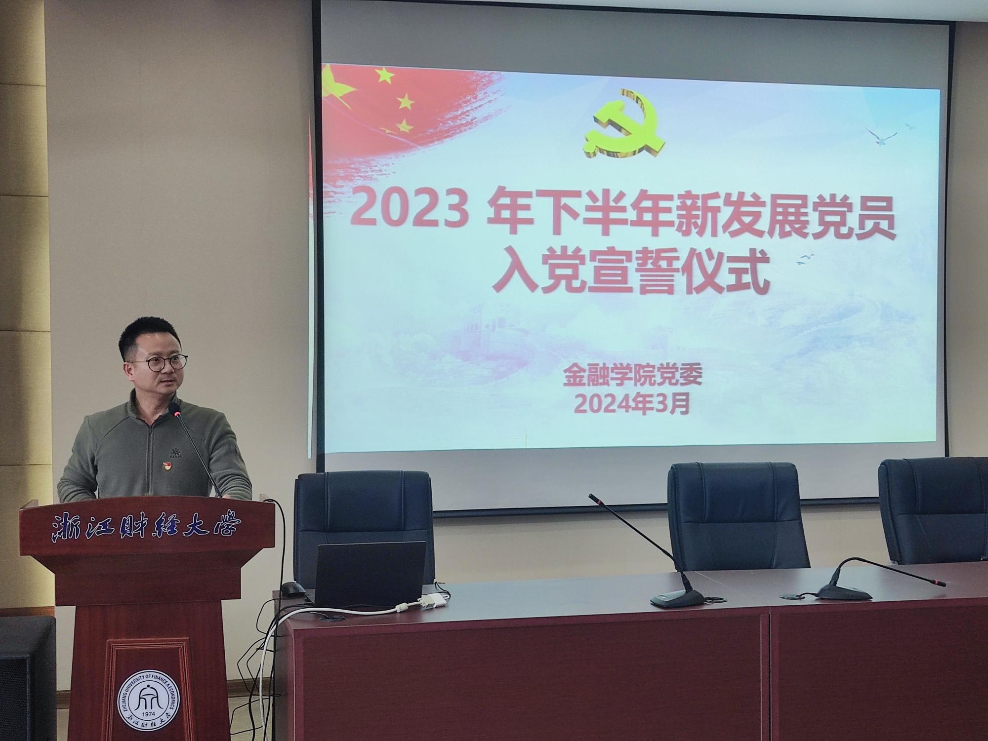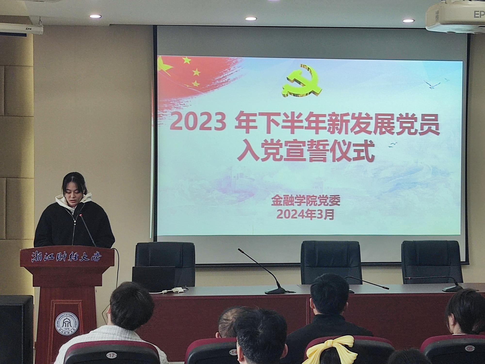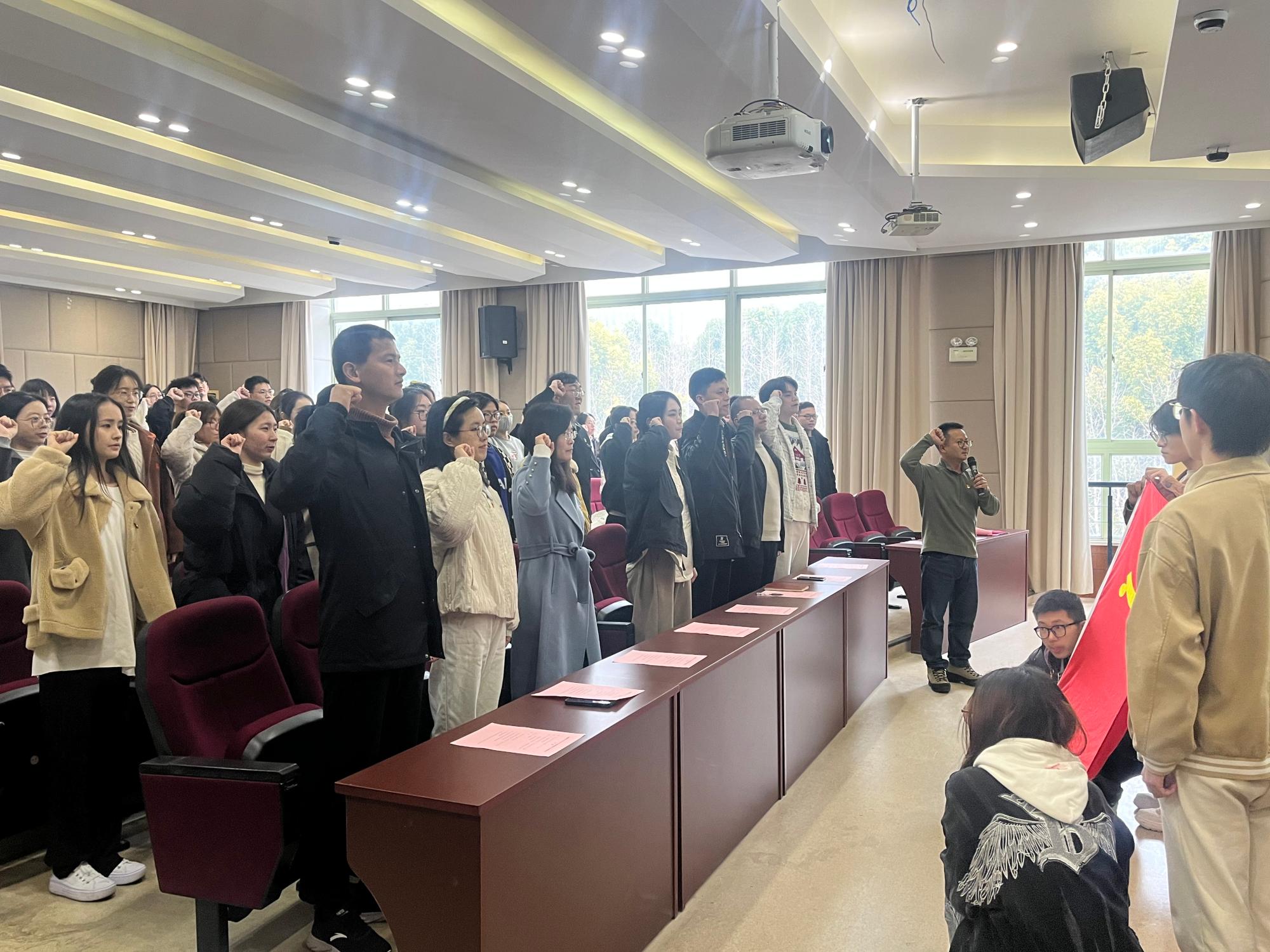 3月14日下午,yl6776永利集团党委在学院楼202报告厅举行2023年下半年新发展党员入党宣誓仪式。学院党委书记黄文礼、各学生党支部书记、研究生党建指导老师、各支部支委、老党员代表及2023年下半年全体新发展党员出席了本次仪式。仪式由专职组织员翟丽媛主持。