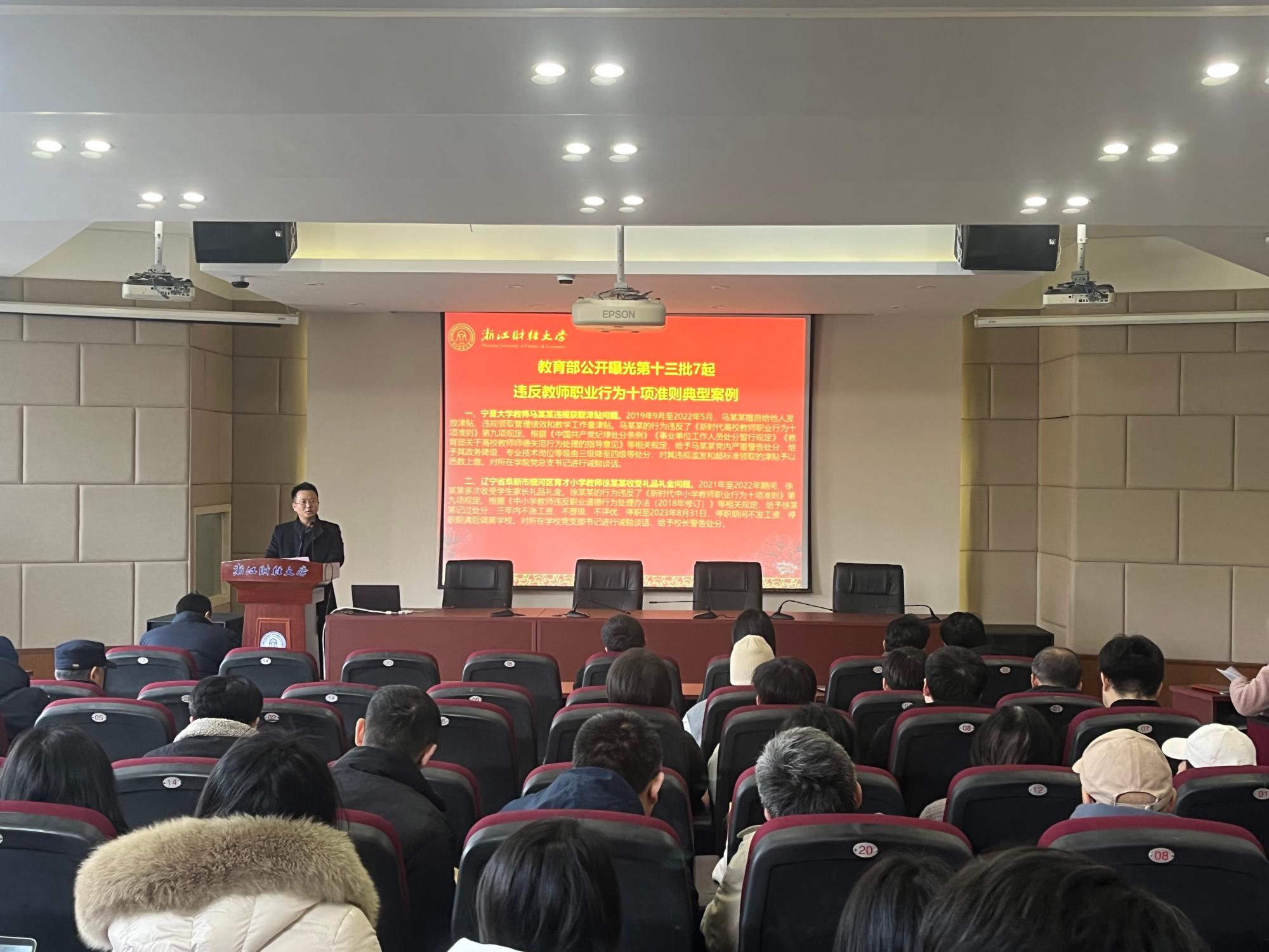 为推进学院师德师风建设,引导教师潜心教书育人,2月27日,yl6776永利集团在202报告厅召开师德师风警示教育大会,学院领导班子成员、全体教职工参加会议。会议由学院党委书记黄文礼主持。