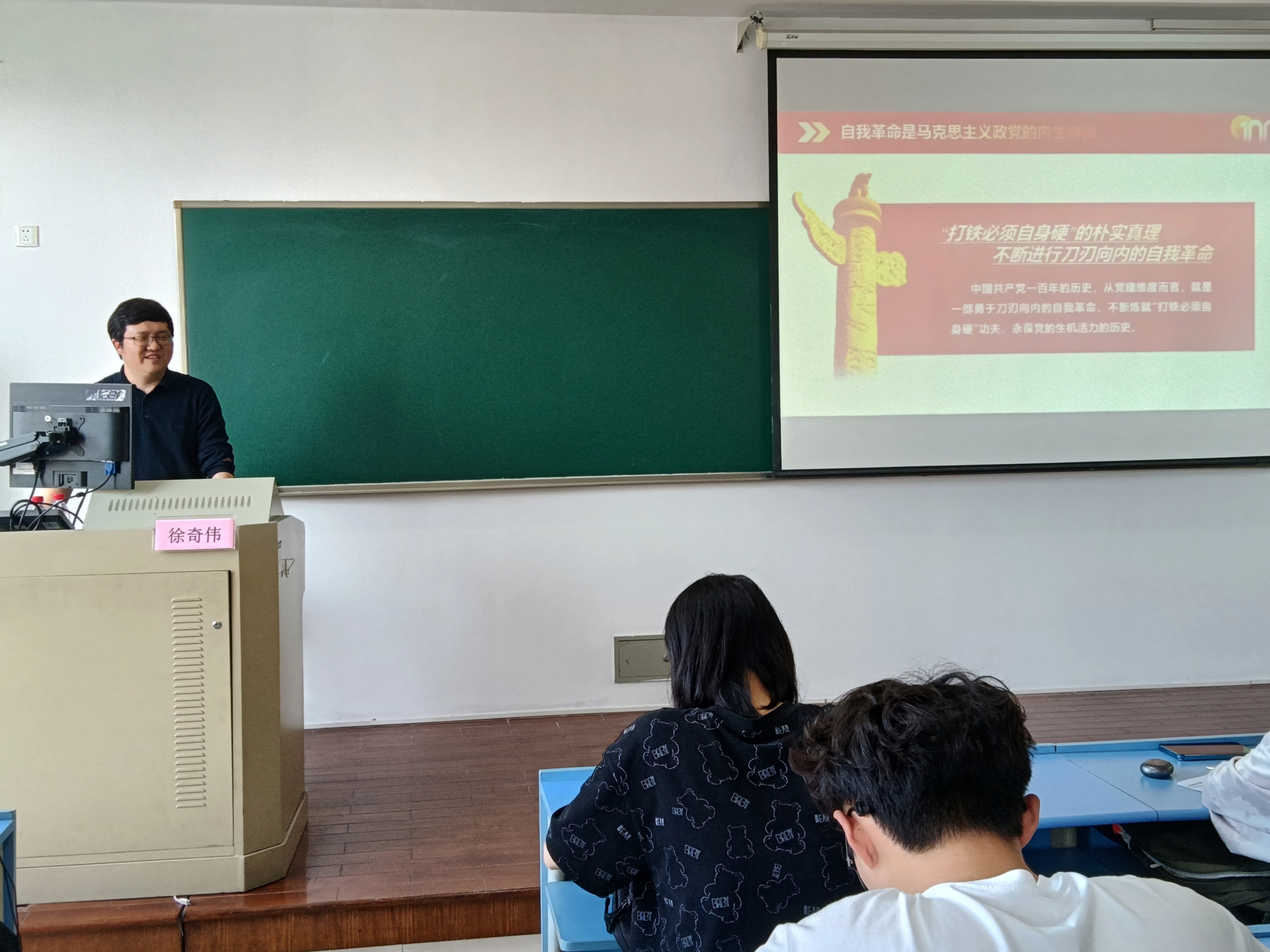 徐奇伟书记以《百年党史中党的自我革命》为主题,分析了马克思主义政党的内生特质,并揭示其艰巨性。随后,徐老师结合过去六次最具历史意义的自我革命,强调了自我革命的重要性和必要性。最后,他激励我们要秉持初心,接继奋斗,做新时代合格党员!刀刃向内的自我革命永远在路上,我们应当重视教育、科技、人才等基础性支撑,开辟新领域新赛道,塑造新动能新优势,全面推进社会主义现代化国家建设。