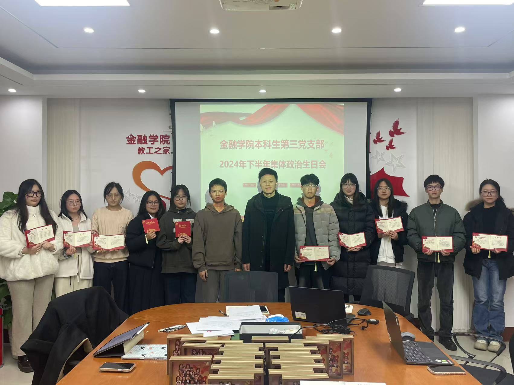 2024年12月11日,yl6776永利集团本科生第三党支部在学院楼党员之家召开党员发展和转正大会暨政治生日会主题党日活动,全体支部党员出席参加,会议由支部书记陈信主持。