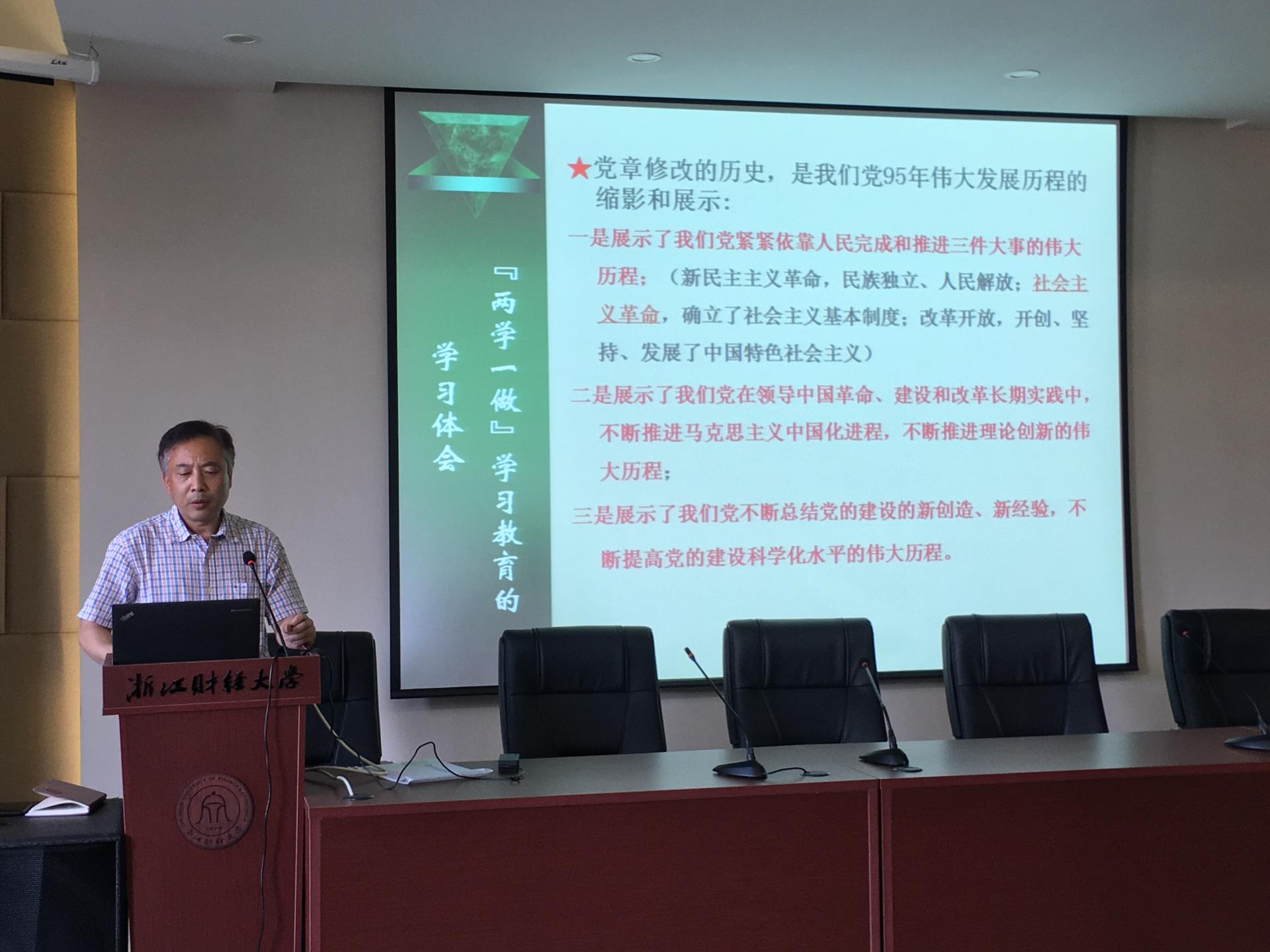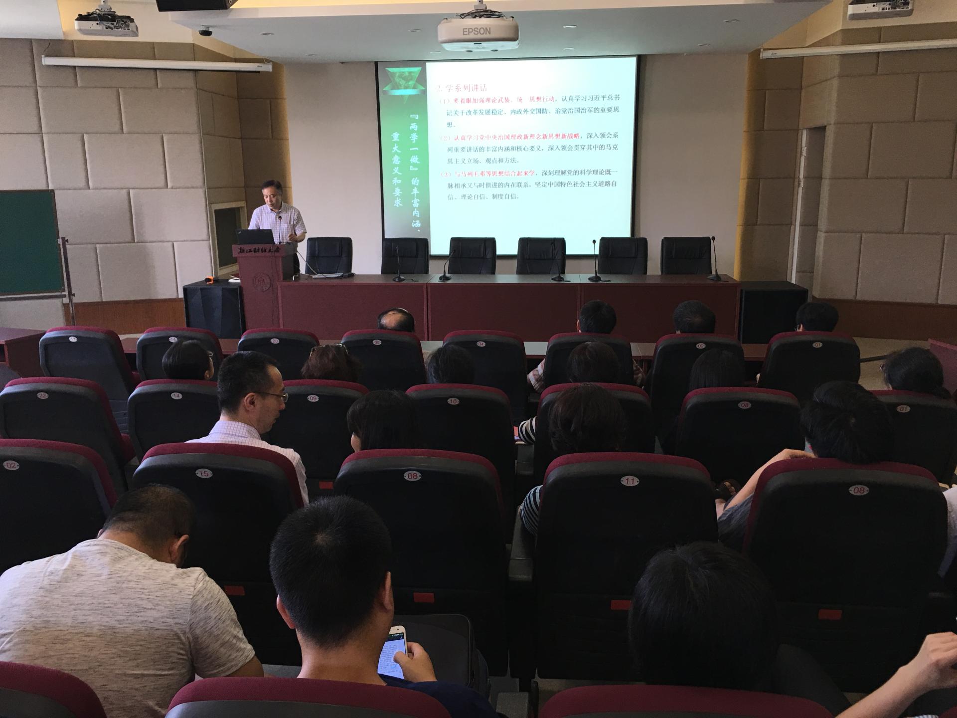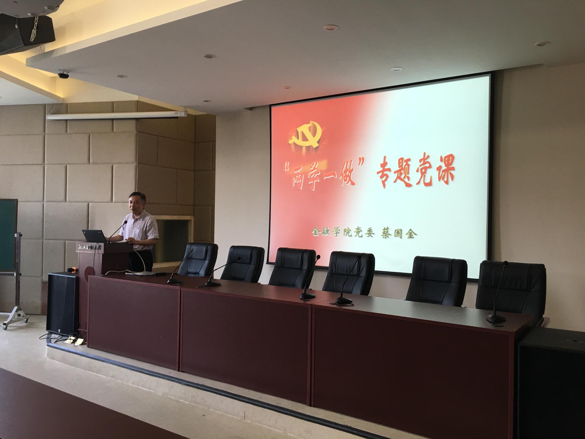 2016年6月21日下午,yl6776永利集团党委书记蔡国金在学院楼报告厅给全体教工党员上了一堂“两学一做”专题学习教育的党课。主要介绍了“两学一做”学习教育的丰富内涵、重大意义和要求,对党章党纲进行了详细解读,对系列讲话进行了概要介绍。重点强调了“两学一做”对共产党员的要求,要求每位共产党员要学习党章党规、学习系列讲话,做合格党员,做到讲政治、有信念,讲规矩、有纪律,讲道德、有品行,讲奉献、有作为。
