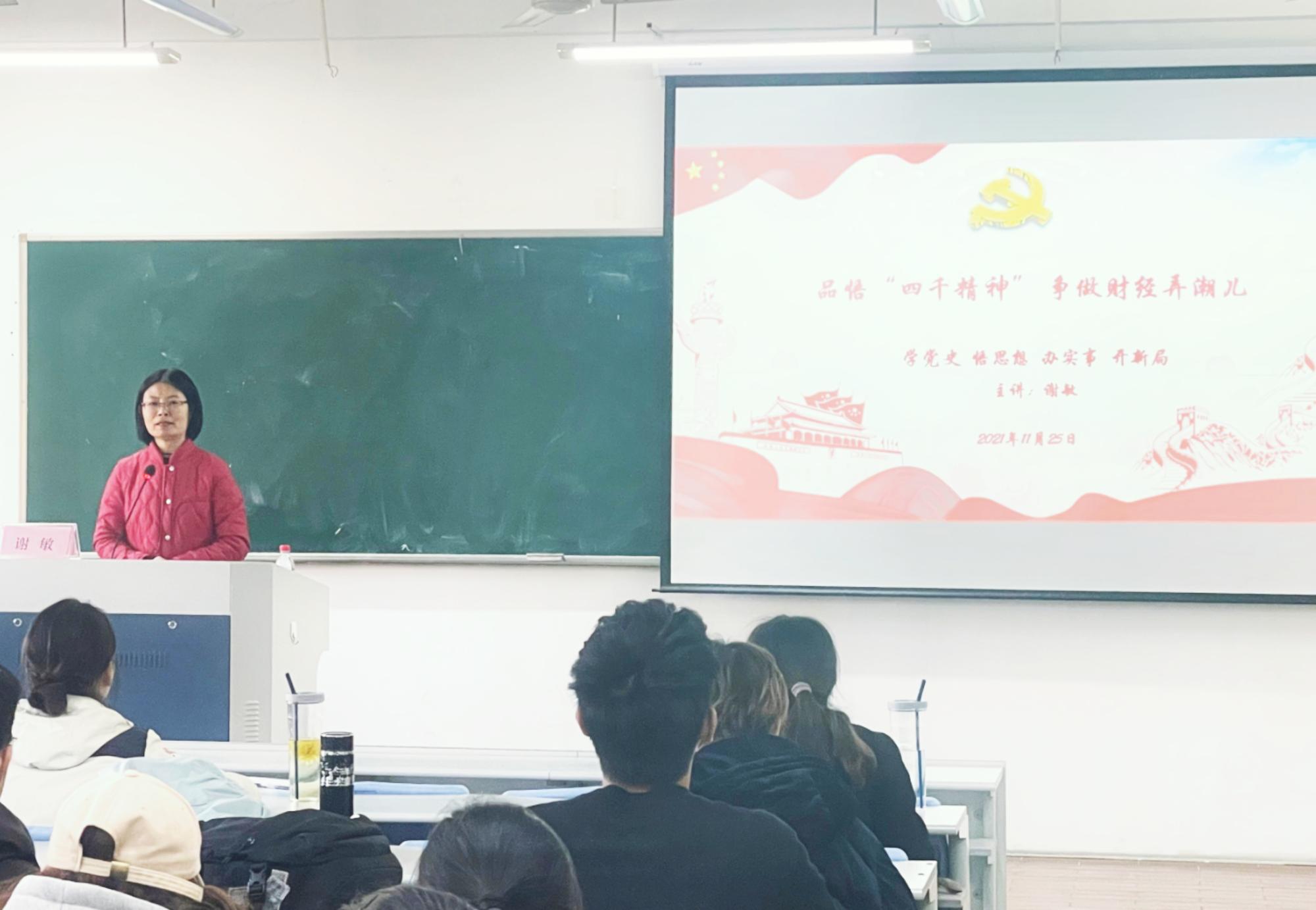 yl6776永利集团党委副书记谢敏以《品悟“四千精神” 争做财经弄潮儿》为题给大家上了一堂生动的党课。她以中国共产党人精神谱系第一批伟大精神正式发布为切入点,具体介绍了蚂蚁岛精神、大陈岛垦荒精神、海峡精神等诞生发展于浙江的伟大精神。着重讲解了“建党精神”“四千精神”,强调浙江的改革发展离不开对“四千精神”的彰显和弘扬,鼓舞学员们自强不息、艰苦奋斗,坚定理想和信念,继续为实现人民对美好生活的向往不懈努力,为中华民族的伟大复兴贡献青春和力量。