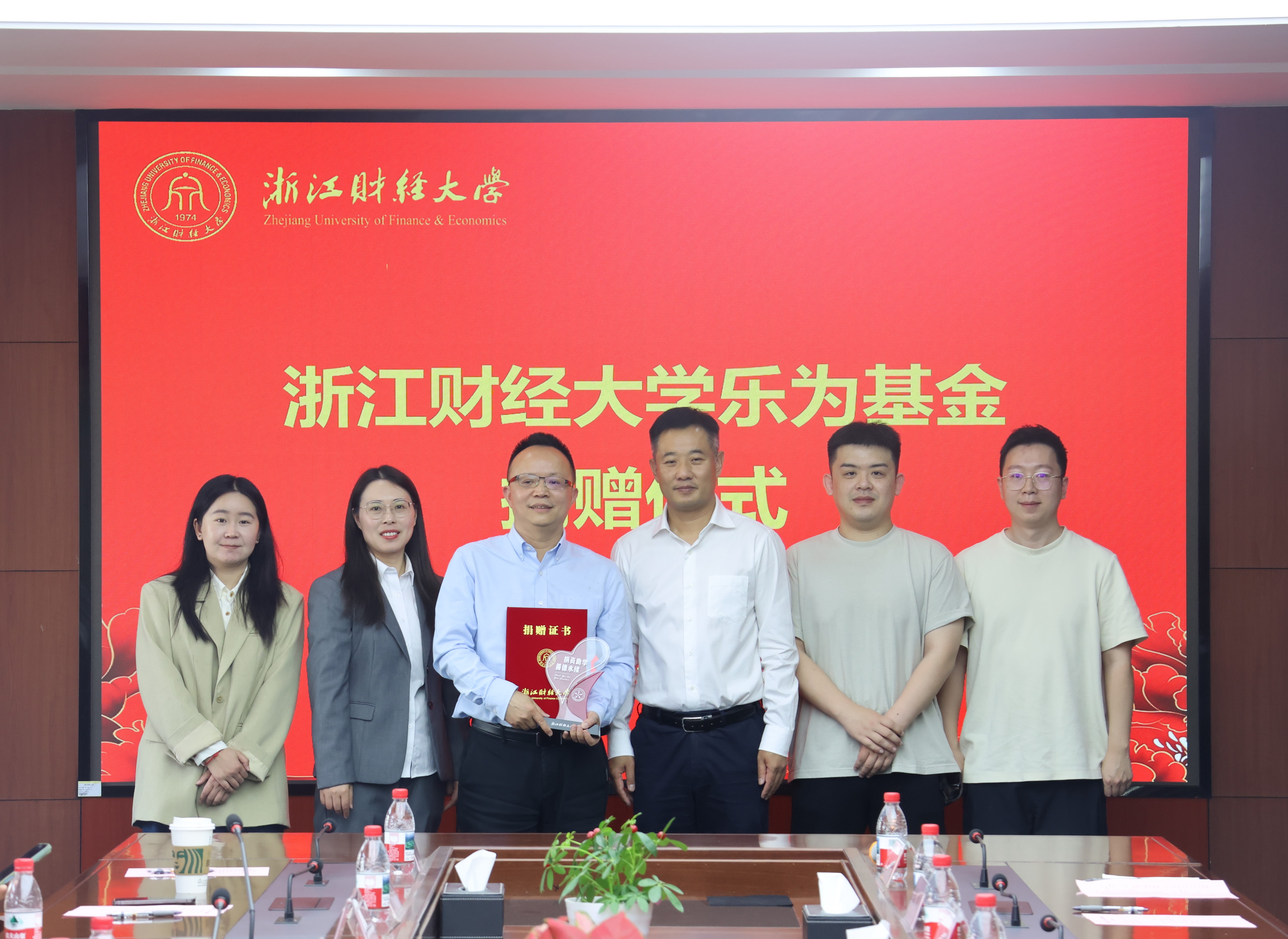 4月9日,“乐为基金”捐赠签约仪式在学校下沙校区举行,校党委副书记程爽,宁波凯格电器有限公司总经理、99届货币银行学专业校友周乐为出席签约仪式。