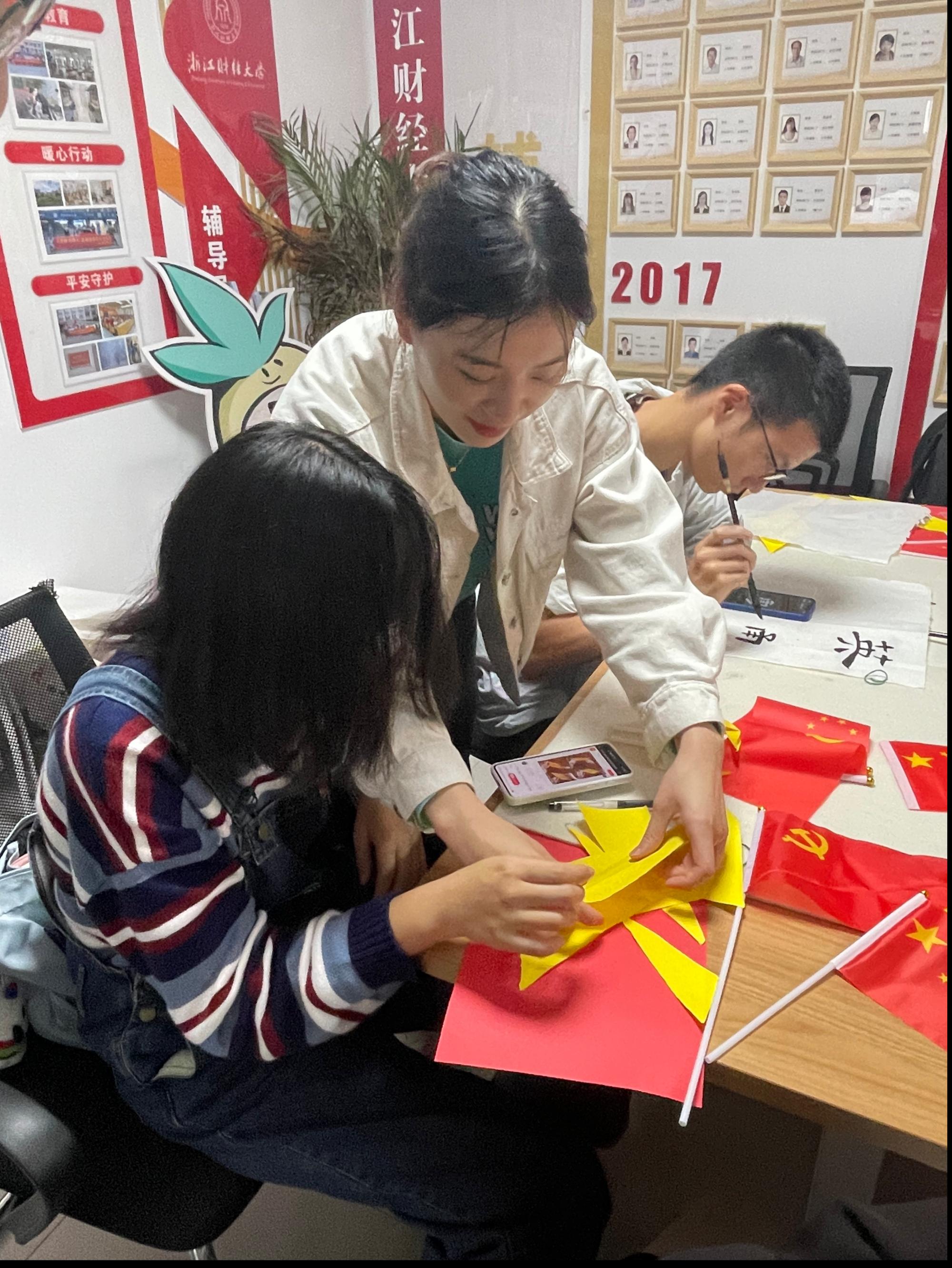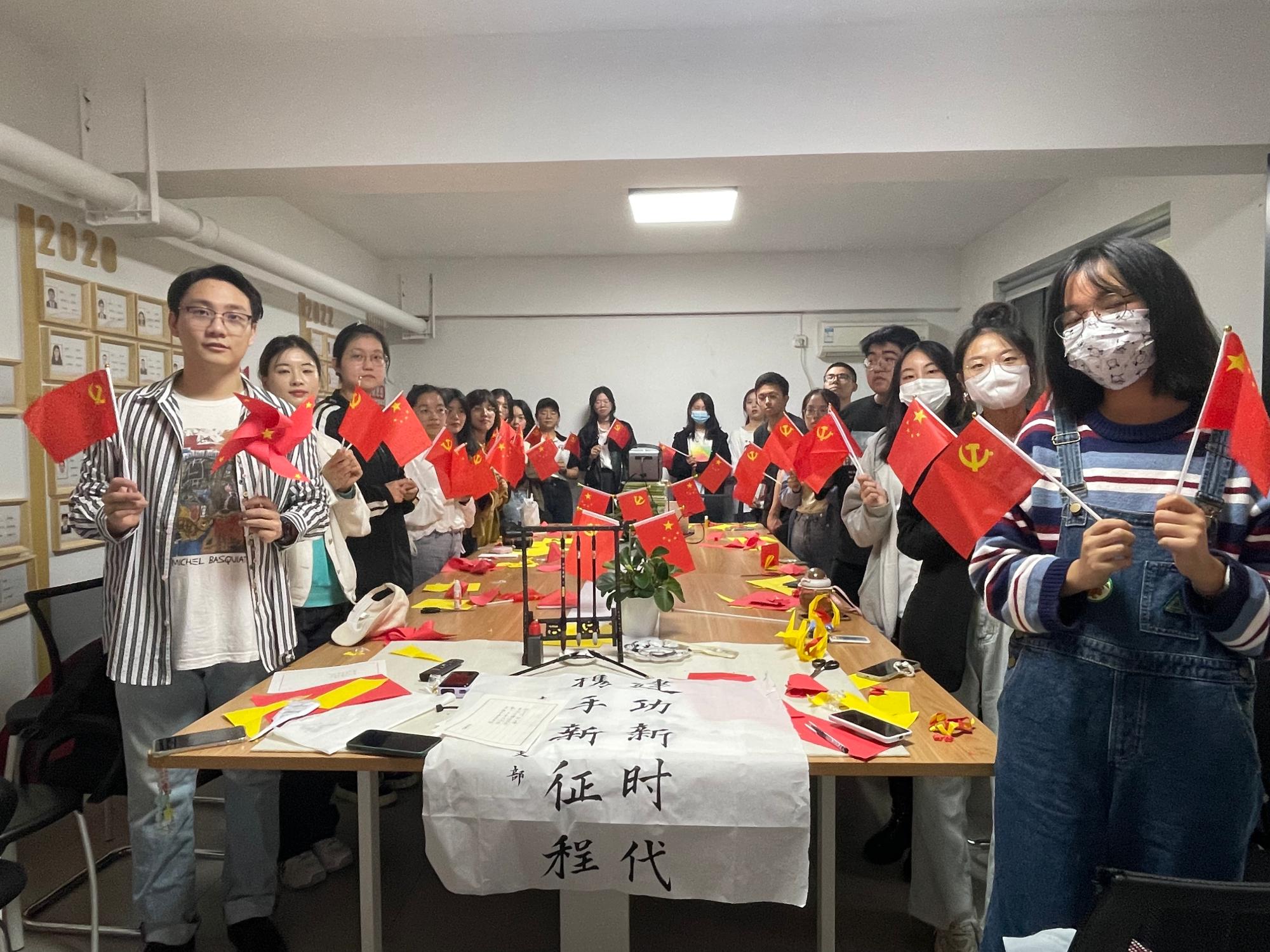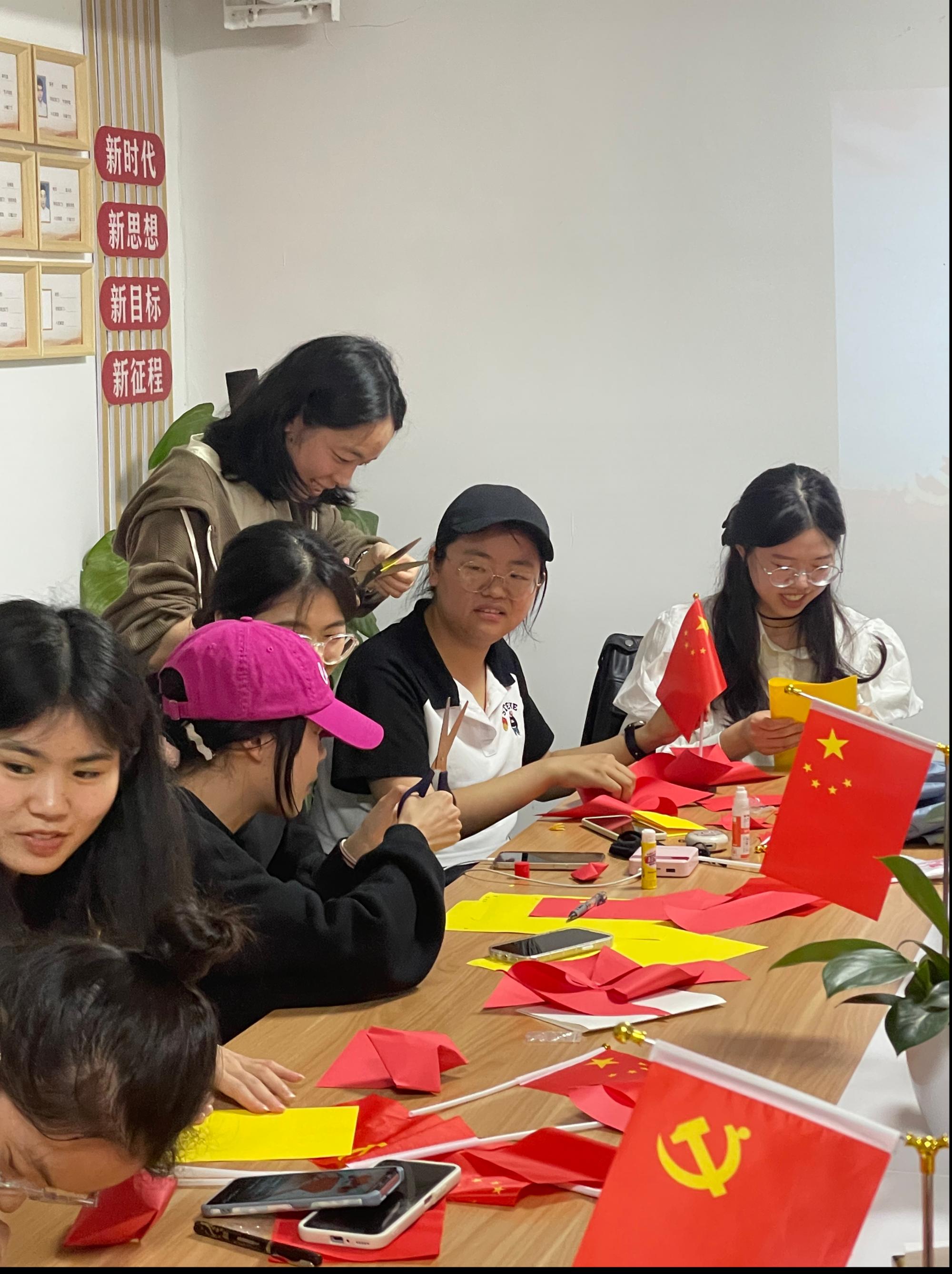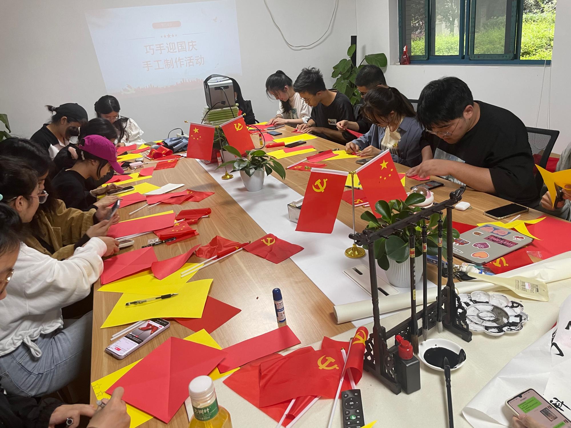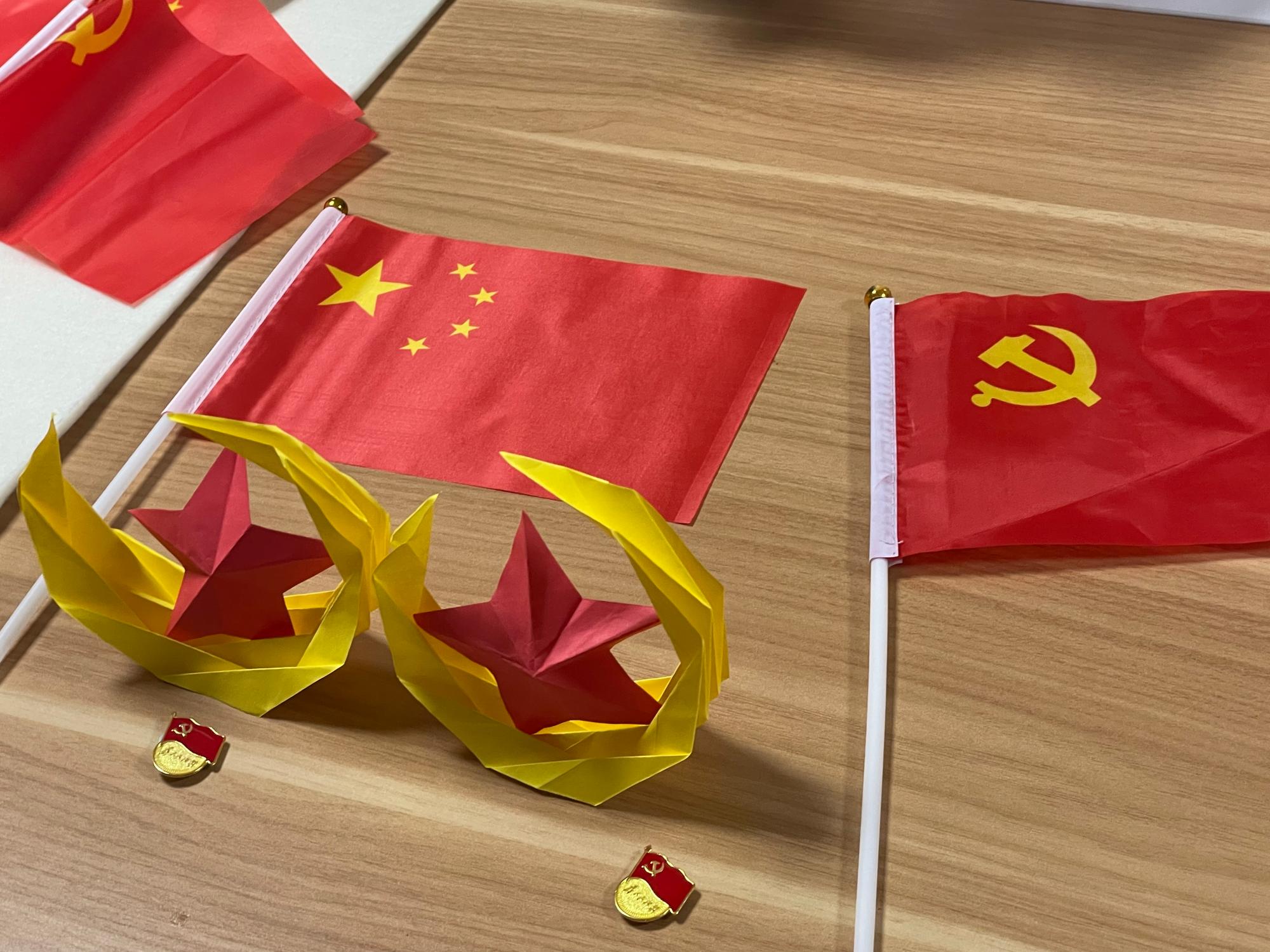 为营造热烈浓厚的节日氛围,党支部还开展了“巧手迎国庆”手工制作活动。支部党员巧妙运用国旗和党旗的元素,共同制作贺国庆、迎二十大手工艺品,向祖国生日献礼,整个活动充满着红色喜悦的气息。